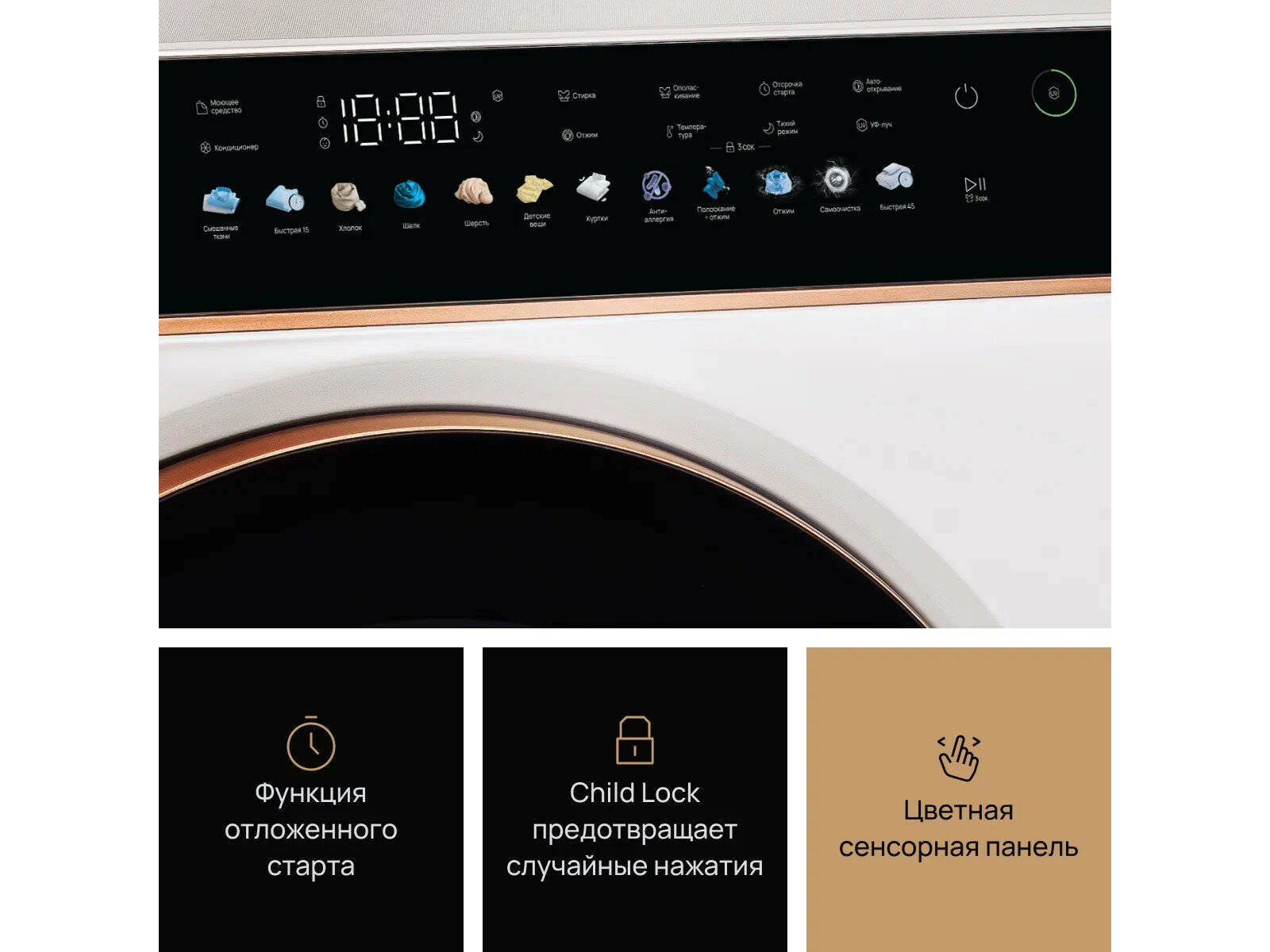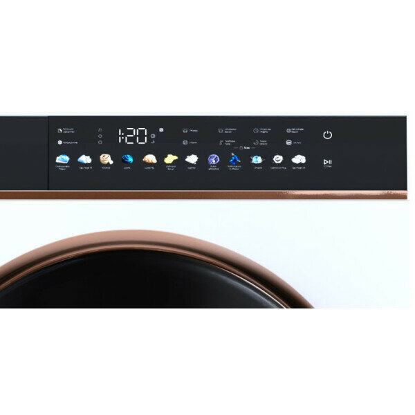 автовзвешивание, автоматическая дозировка моющего средства, отложенный старт, очистка барабана, установка времени завершения стирки, 24, Звуковой сигнал, Отключение звукового сигнала, Отмена отжима, Уменьшение времени стирки