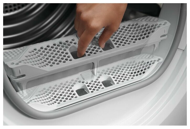 ворсовый фильтр, контроль влажности, отложенный старт, предотвращение сминания, реверсивное вращение барабана, Звуковой сигнал, Отсрочка запуска