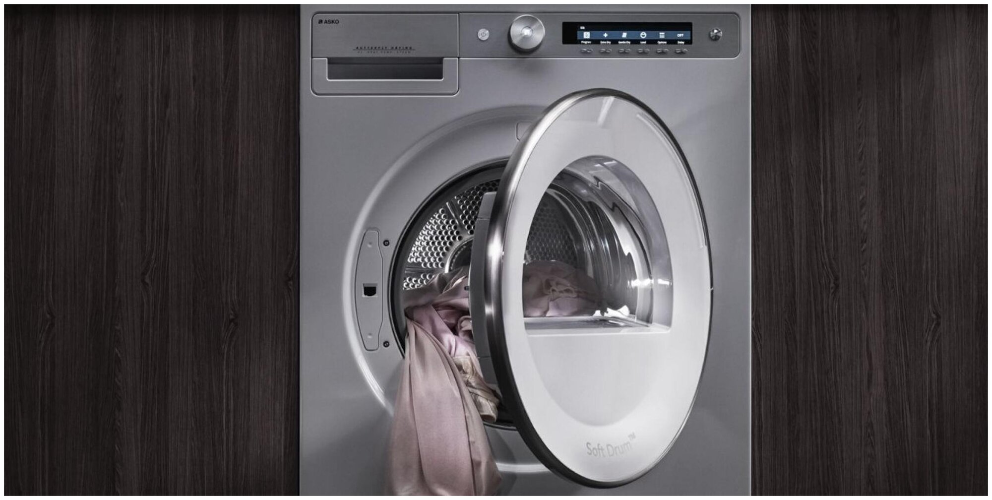 Модель Asko T208H.W оснащается вместительным барабаном Soft Drum, который дополнен особыми лопастными элементами Butterfly и стальным нержавеющим покрытием.