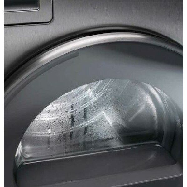 Барабан выполнен из нержавеющей высококачественной стали, опорная конструкция оснащена пятью шарикоподшипниками. Технология Butterfly Drying благодаря активному вращению барабана гарантирует постоянное движение белья внутри: вещи не мнутся и высыхают быстро. Тепловой насос, обеспечивающий постоянную циркуляцию нагретого воздуха, препятствует образованию складок и пересыханию тканей. А реверсивное вращение не допускает скручиваний. Барабан освещается изнутри, что делает загрузки и выгрузки изделий максимально комфортными.