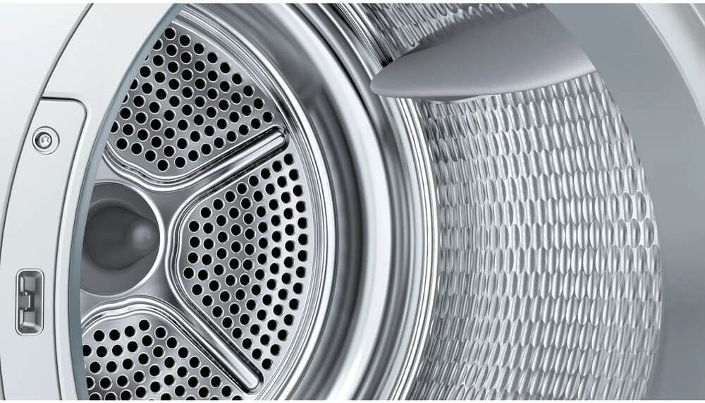 антивибрационный дизайн боковых поверхностей (AntiVibration) Антивибрационный дизайн боковых поверхностей Антивибрационный дизайн боковых поверхностей (AntiVibration Design)— инновация, применяемая всушильных машинах Bosch, Siemens иряда других крупных брендов. Онпредназначается для снижения уровня шума ивибрации: для этого набоковых стенках корпуса выдавливается рельеф ввиде полос, дуг или концентрических кругов. Жесткость всей конструкции возрастает, машина меньше вибрирует даже при вращении барабана навысоких оборотах. Такой дизайн способствует нетолько снижению уровня шума иувеличения комфорта использования сушилок, ноиувеличению срока эксплуатации устройства.