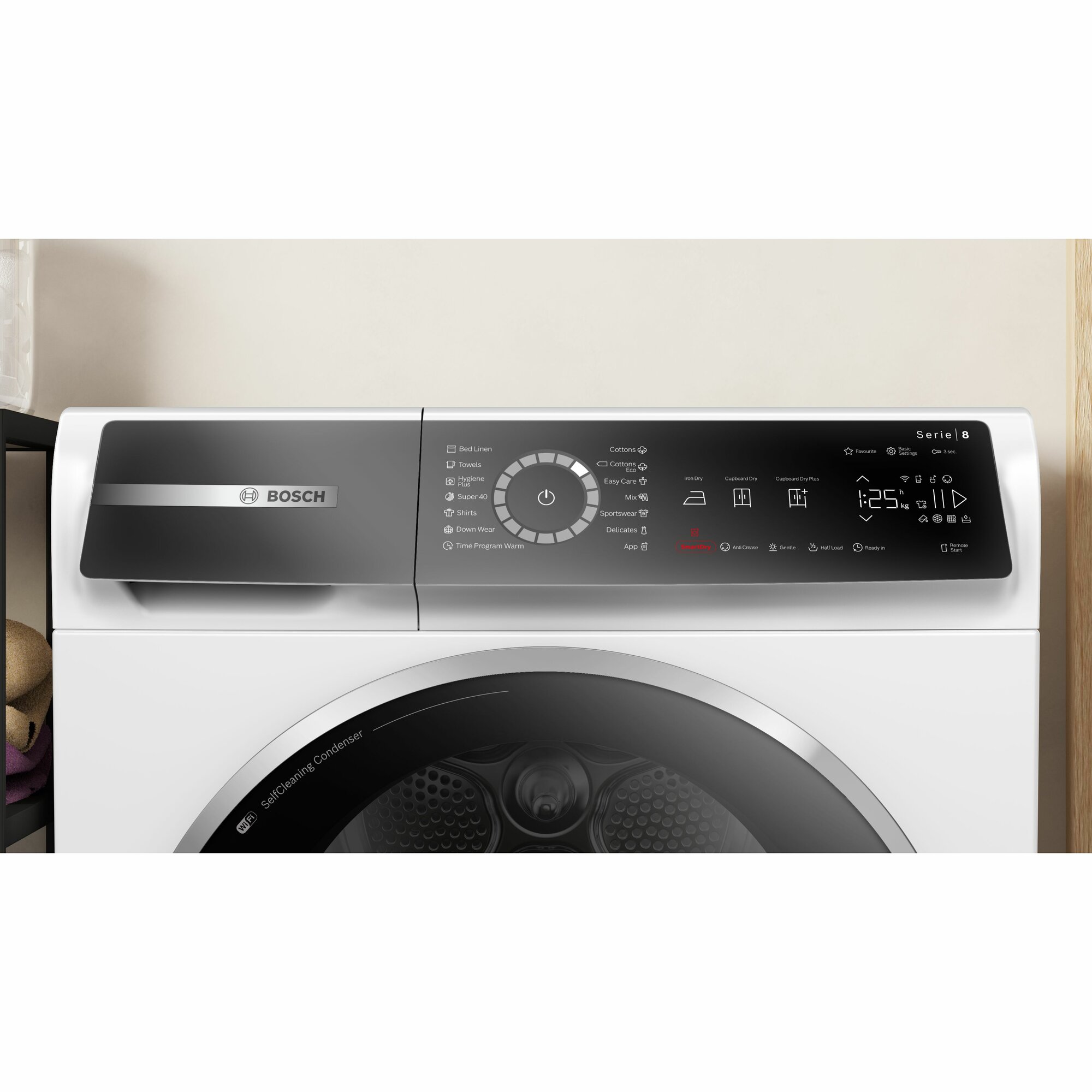 ворсовый фильтр, контроль влажности, отложенный старт, предотвращение сминания, реверсивное вращение барабана, сбор конденсата, сигнал окончания стирки, установка времени завершения стирки, Автоматическое взвешивание, Возможность отвода конденсата в канализацию, Звуковой сигнал, Контроль остаточной влажности, Отключение звукового сигнала, Отмена отжима, Отсрочка запуска, Очистка барабана, Уменьшение времени стирки, Функция Home Connect (Wi-Fi), легко гладить, моя программа