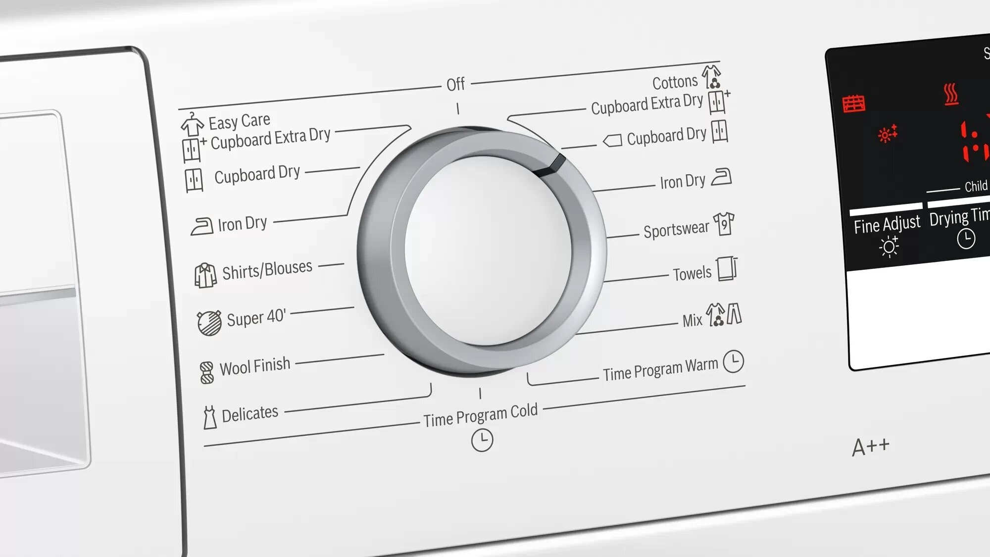 дисплей, подсветка барабана, Низкий уровень шума при работе, Рельефная поверхность барабана