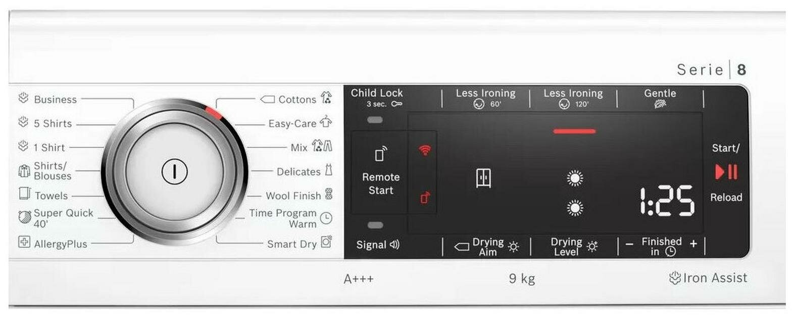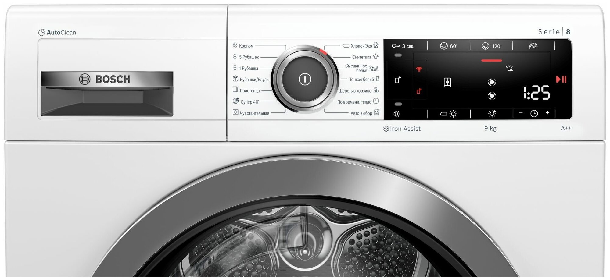 панель управления на английском языке, технология AutoClean, система SensitiveDrying, технология SmartDry, технология AntiVibration
