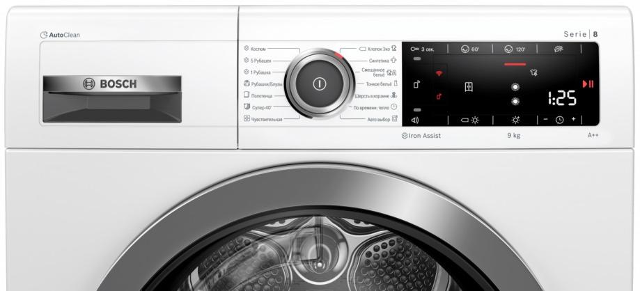 Длительность стандартной программы Хлопок: 136 мин. Длительность стандартной программы Хлопок при полной загрузке 171 мин и при неполной загрузке 109 мин Энергопотребление 259 кВт⋅ч / год, на основе 160 циклов сушки на стандартной программе \"Хлопок\" при полной и неполной загрузке, и при использовании режимов низкой мощности. Фактическое энергопотребление за цикл зависит от того, как используется прибор Энергопотребление в режиме выключенного состояния: 0.1 Вт и в режиме включенного состояния: 0.1 Вт Энергопотребление в режиме ожидания (W) (2010 / 30 / EC): 0.10 Энергопотребление на стандартной программе \"Хлопок\" при полной загрузке: 2.1 кВт / ч и при неполной загрузке: 1.24 кВт / ч Средняя эффективность конденсации на стандартной программе \"Хлопок\" при полной загрузке: 91 %, и при неполной загрузке: 91 %. Продолжительность режима включенного состояния: 30 мин Продолжительность режима ожидания (2012 / 30 / EC) (мин): 30 Потребление в режиме выключения (Вт): 0.10 Количество фторировавших газов: 0.149 Home Connect Home Connect Features: en: Energymgmt Photovoltaics, en: iService Remote, Удаленный мониторинг и контроль Взвешенная эффективность конденсации для стандартной программы \"Хлопок\" при полной и неполной загрузке: 91 %. Глубина прибора при открытой дверце: 107.5 см Глубина прибора, включая дверцу: 65.2 см Возможность встраивания под столешнику с минимальной высотой нижней поверхности 85 см Герметично запечатанное оборудование Высота с рабочей поверхностью (мм): 842 Доступные языки дисплея: русский, символы Тип штепсельной вилки: Вилка с заземлением Время цикла Защита от сминания: 120 Возможность выбора времени отложенного старта: бесступенчатый Возможность подключ.к водопр.отвода конденсата Iron Assist: обработка белья паром. Разглаживает складки и может значительно облегчить глажку. Панель управления со встроенным режимом включения / выключения Регулируемая температура сушки