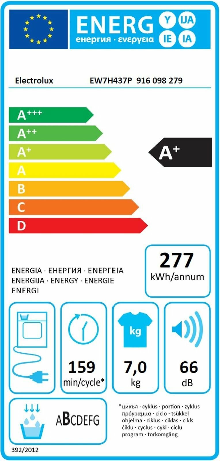 Сушильная машина Electrolux EW7H457W белый