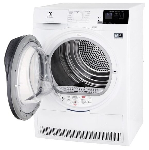 дисплей, подсветка барабана, Низкий уровень шума при работе, Открытие люка на 180°, Рельефная поверхность барабана, Тепловой насос