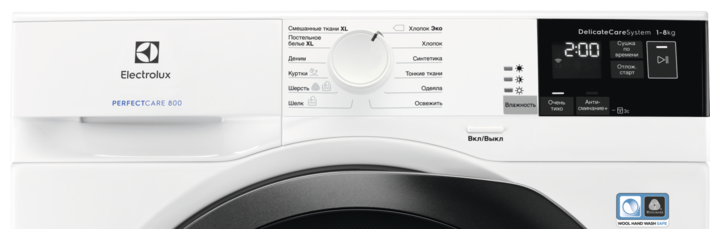 система DelicateCare подберет нужные температуру и режим вращения барабана для каждого типа ткани, система SmartSense определяет влажность каждой вещи, система GentleCare не пересушивает одежду, система SensiCare подбирает время сушки и уровни влажности
