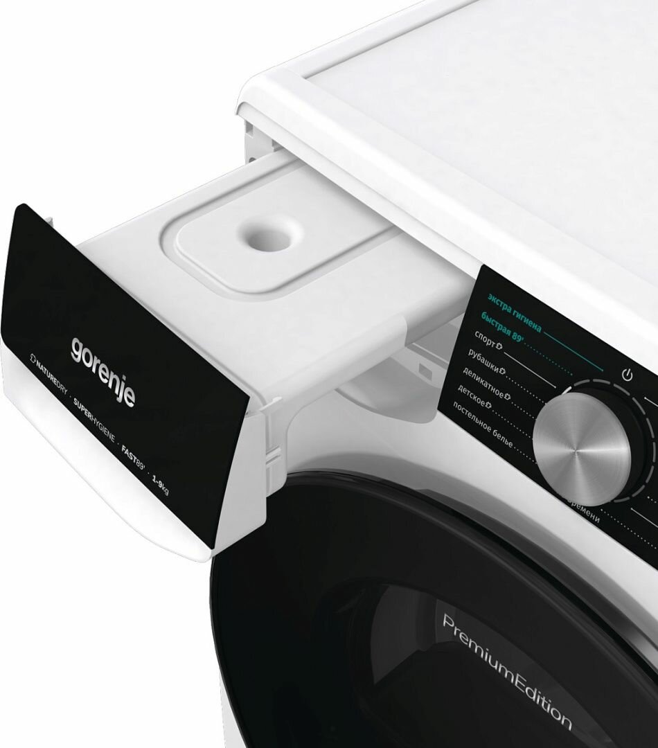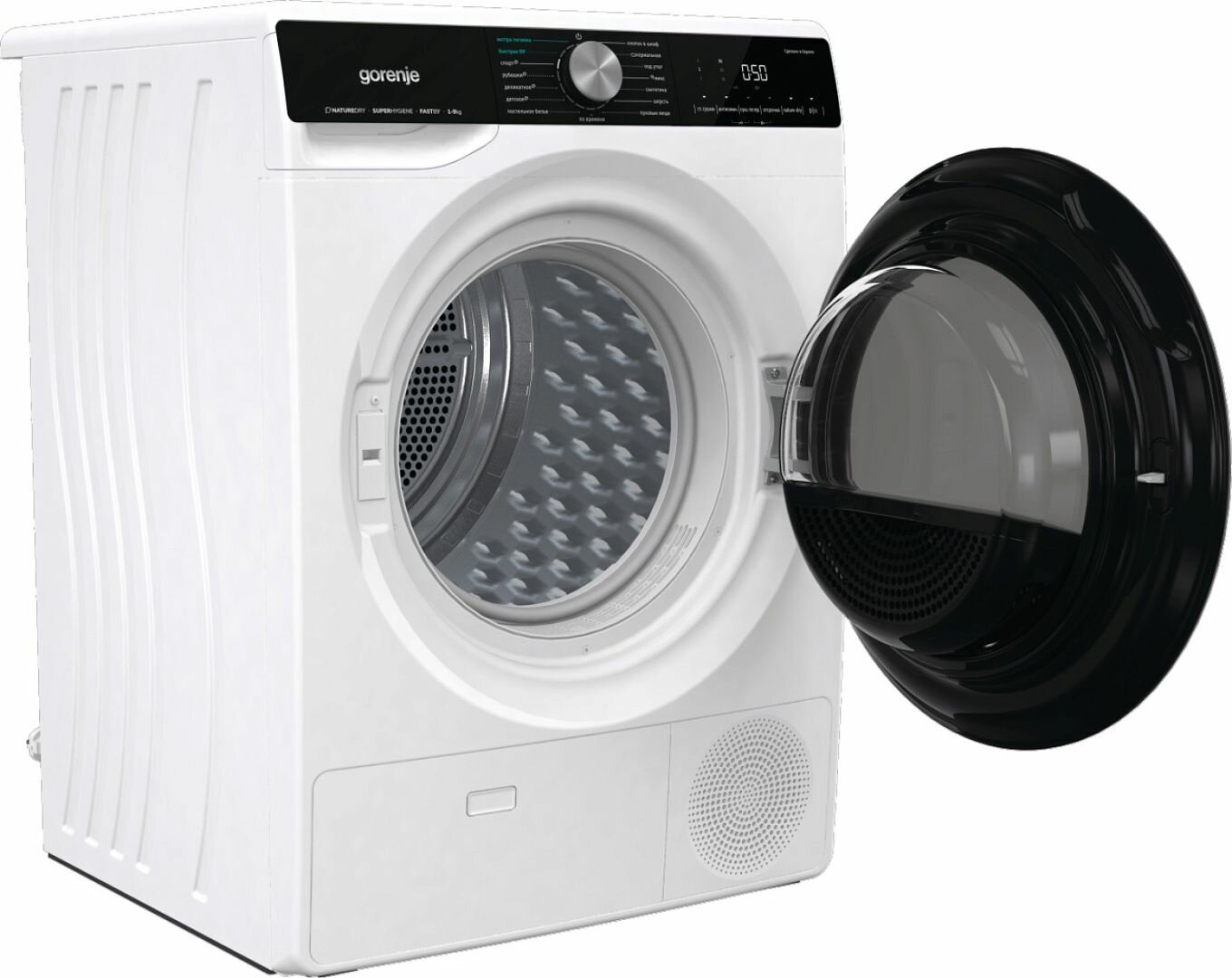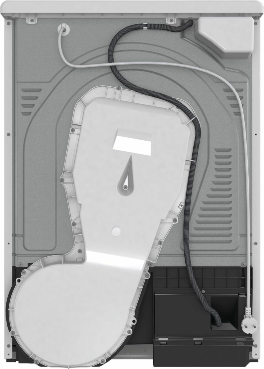 двухпоточная система подачи воздуха TwinAir, рёбра жёсткости StableTech, дверь SleekDoor, пользовательские настройки для всех программ, индикация заполнения ёмкости для конденсата, ножки присоски для установки на стиральную машину