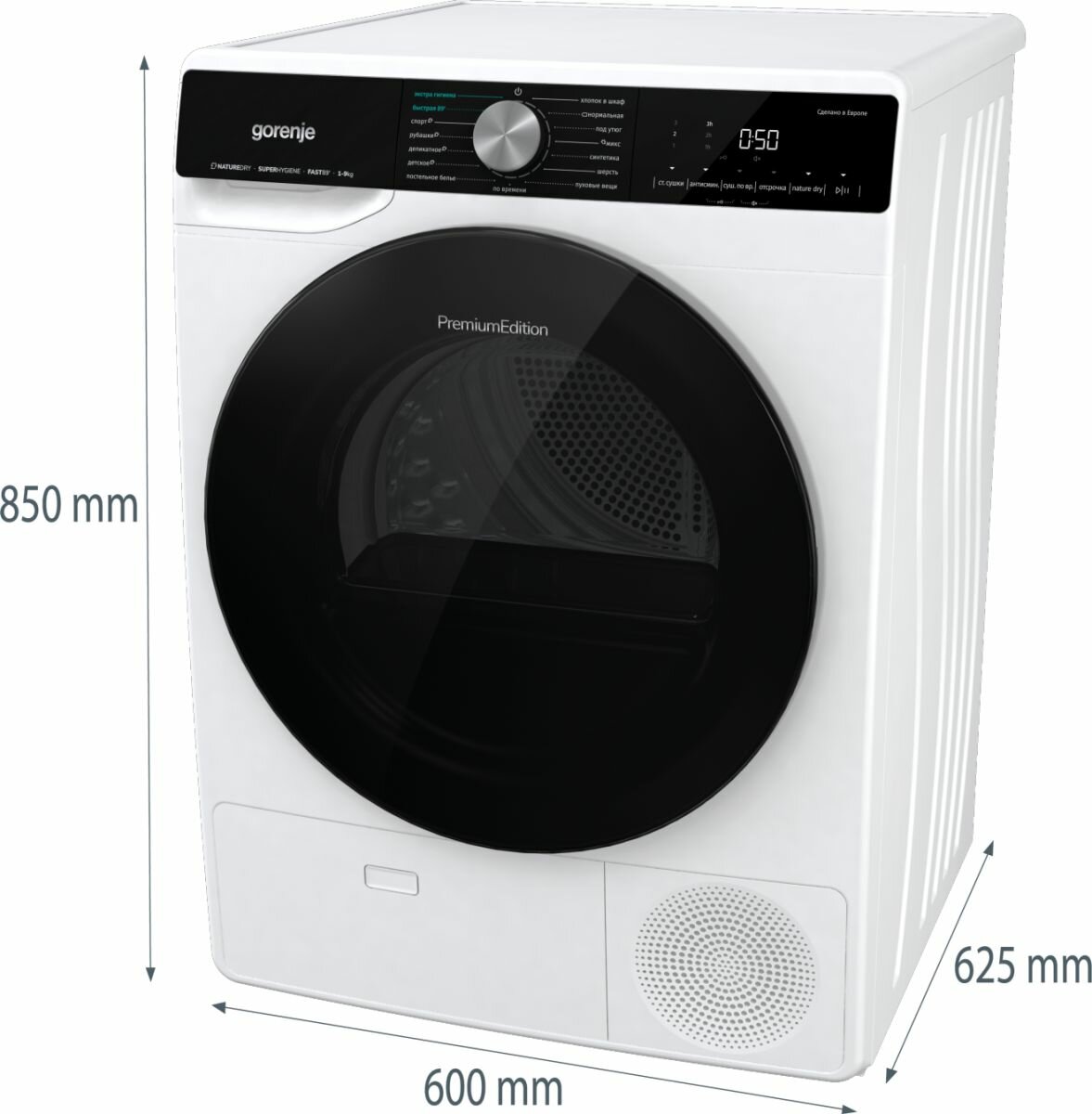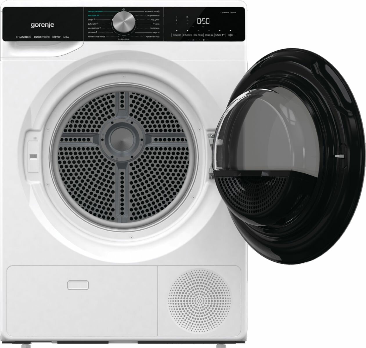 быстрая сушка, детская одежда, постельное бельё, пуховые изделия, синтетика, сорочки (рубашки), хлопок, шерсть, Автоматическое взвешивание, Звуковой сигнал, Контроль остаточной влажности, Отсрочка запуска, быстрая 89 мин, деликатное, половинная загрузка, рубашки, спорт, функция «освежить», экстра гигиена