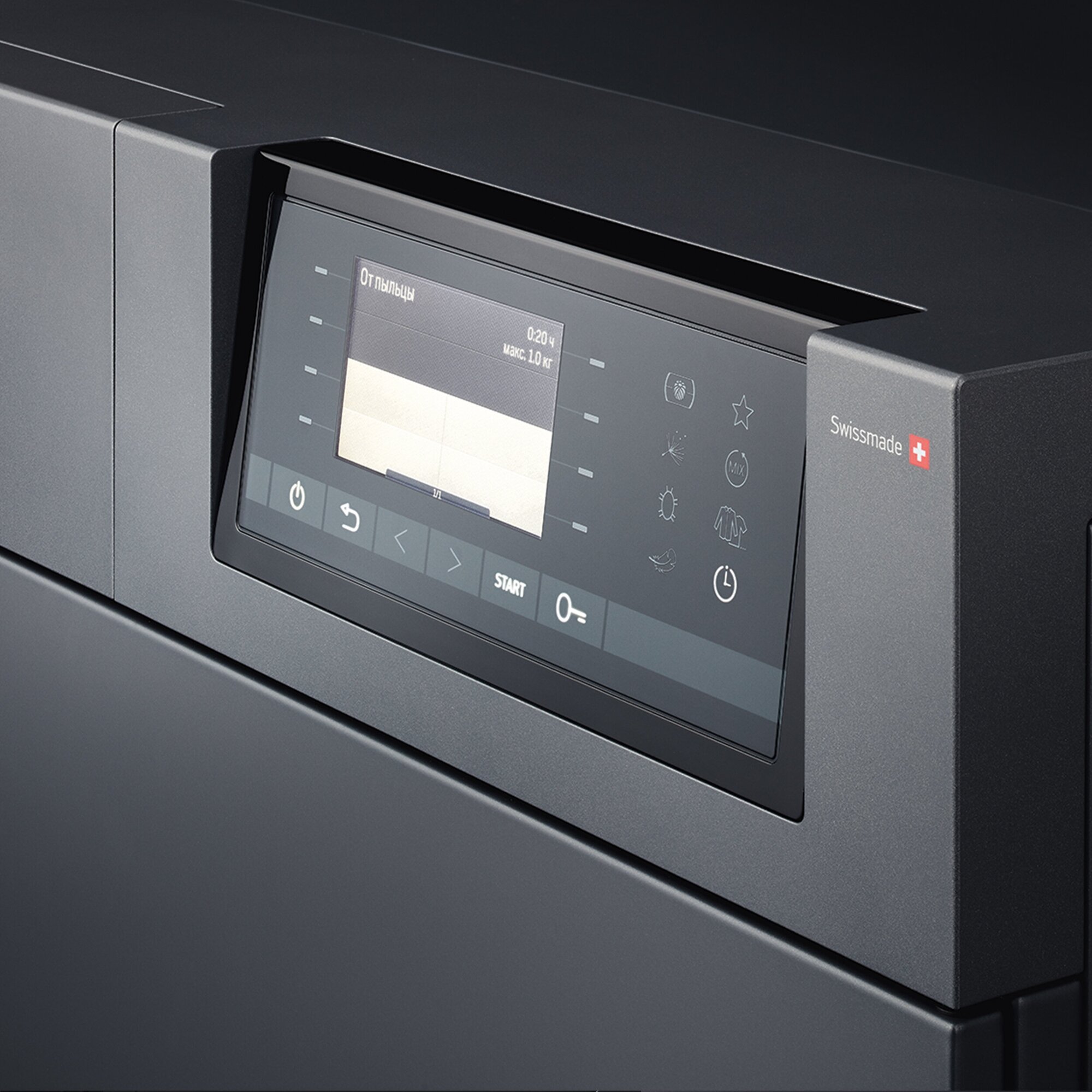 индикация хода программы, индикация времени до конца программы, индикация заполнения резервуара, объем барабана - 80 л, отвод конденсата в дренаж, максимальное время отсрочки запуска - 168 ч