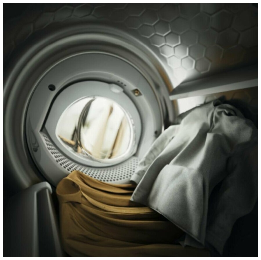 дисплей, подсветка барабана, сотовый барабан, Встроенная система отвода конденсата, Емкость для сбора конденсата, Звуковой сигнал, Низкий уровень шума при работе, Система шумоподавления, Тепловой насос