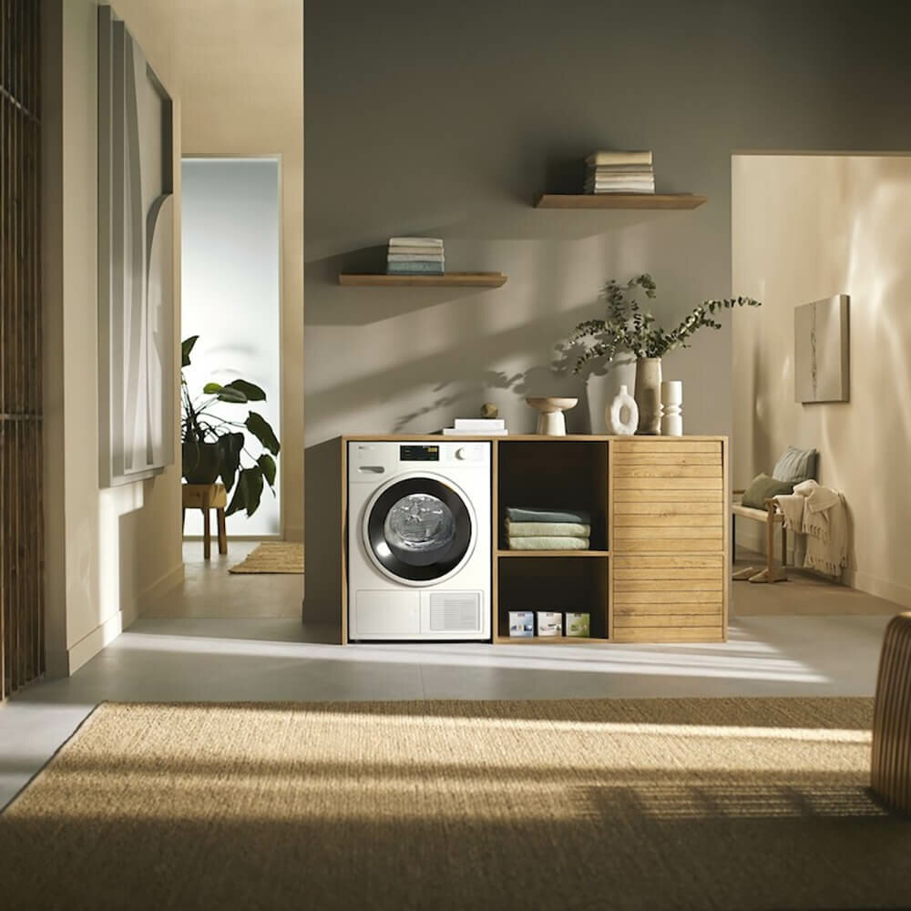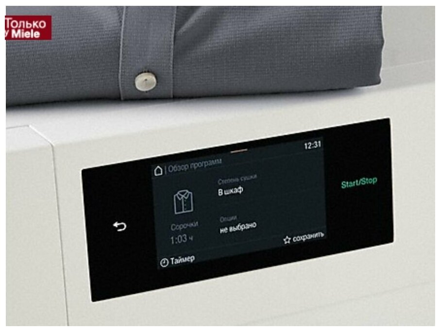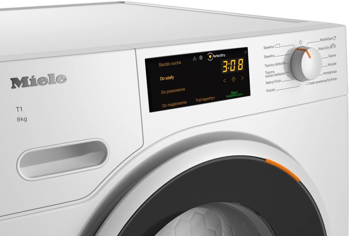 Миле TWD260WP можно объединить в сеть со стиральной машиной благодаря мобильному приложению Miele@home. Функция Wash2Dry позволяет настроить приборы так, чтобы по окончании цикла стирки данные поступали в сушильную машину, нужная программа сушки будет выбрана автоматически, а пользователю нужно будет только переложить вещи.