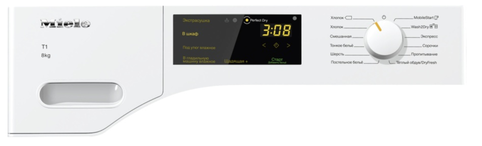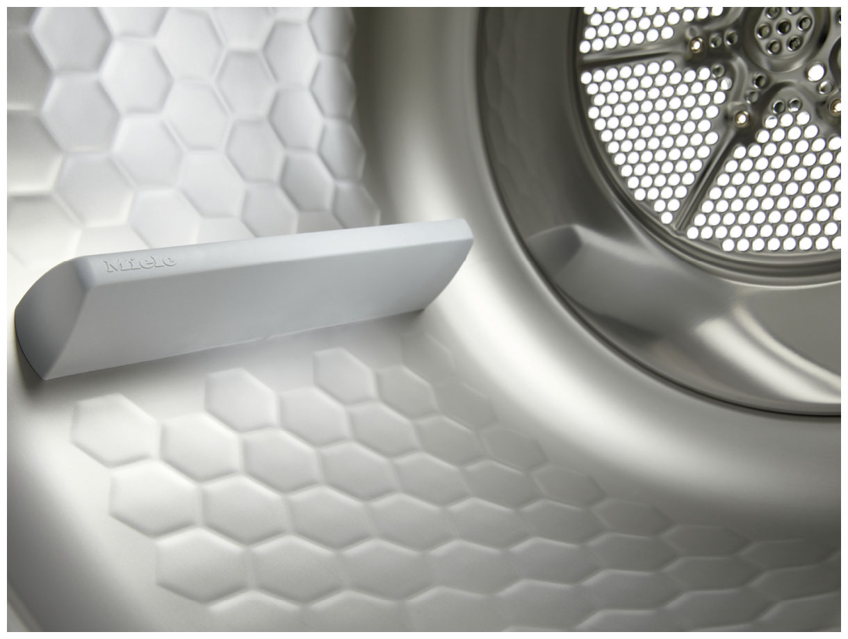 Тепловой насос нагнетает сухой теплый воздух внутрь рабочей камеры, где он активно набирает влагу и способствует быстрому высушиванию. Запатентованная технология PerfectDry определяет остаточную влажность белья и обеспечивает максимальную эффективность.