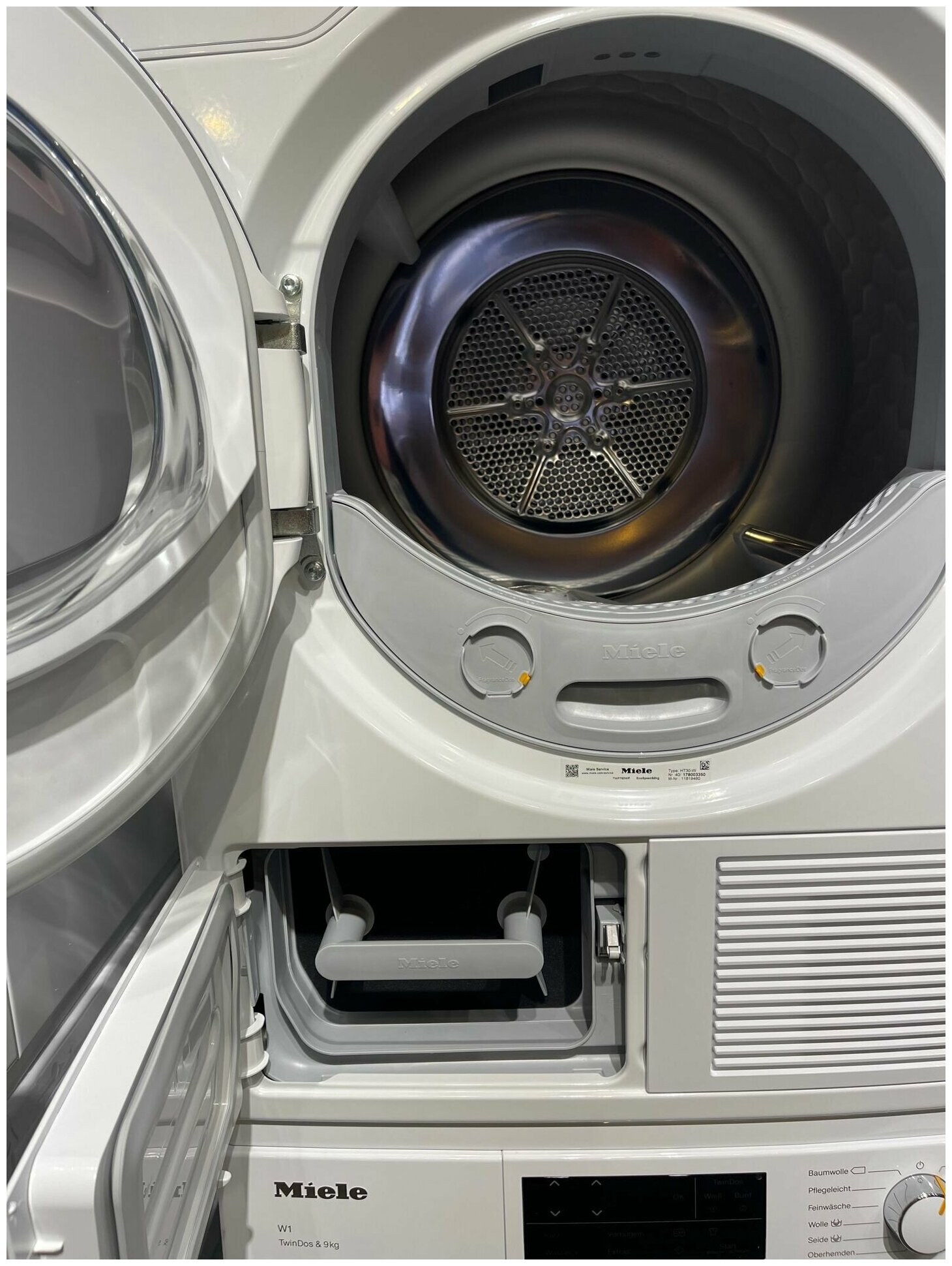 Прибор можно объединить в сеть со стиральной машиной через мобильное приложение Miele@home. Благодаря Wash2Dry нужная программа сушки будет выбрана автоматически в зависимости от параметров стирки, а пользователю нужно будет только переложить вещи.