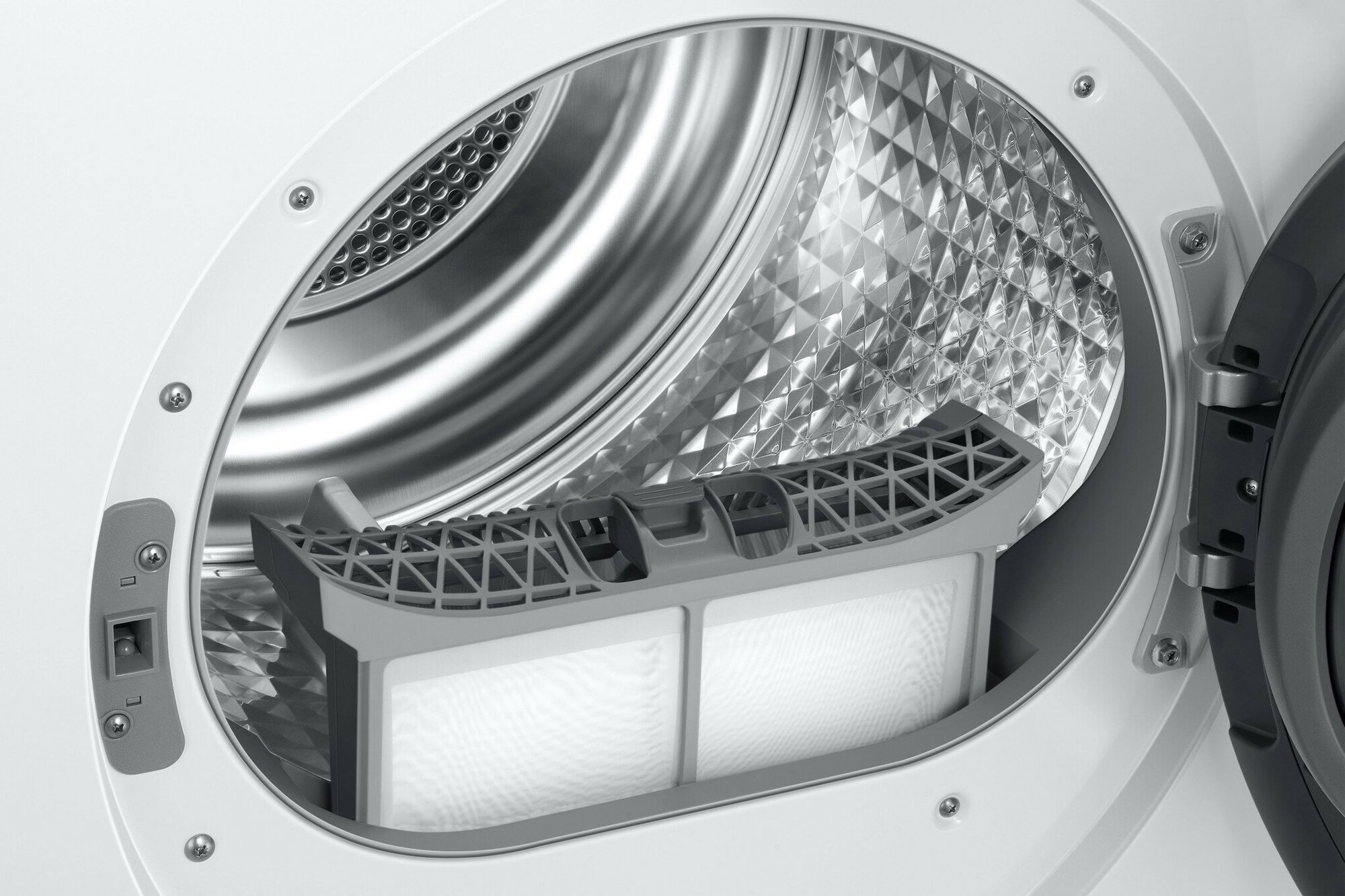 ворсовый фильтр, выбор температуры стирки, отложенный старт, предотвращение сминания, реверсивное вращение барабана, Звуковой сигнал, Контроль остаточной влажности, Отсрочка запуска