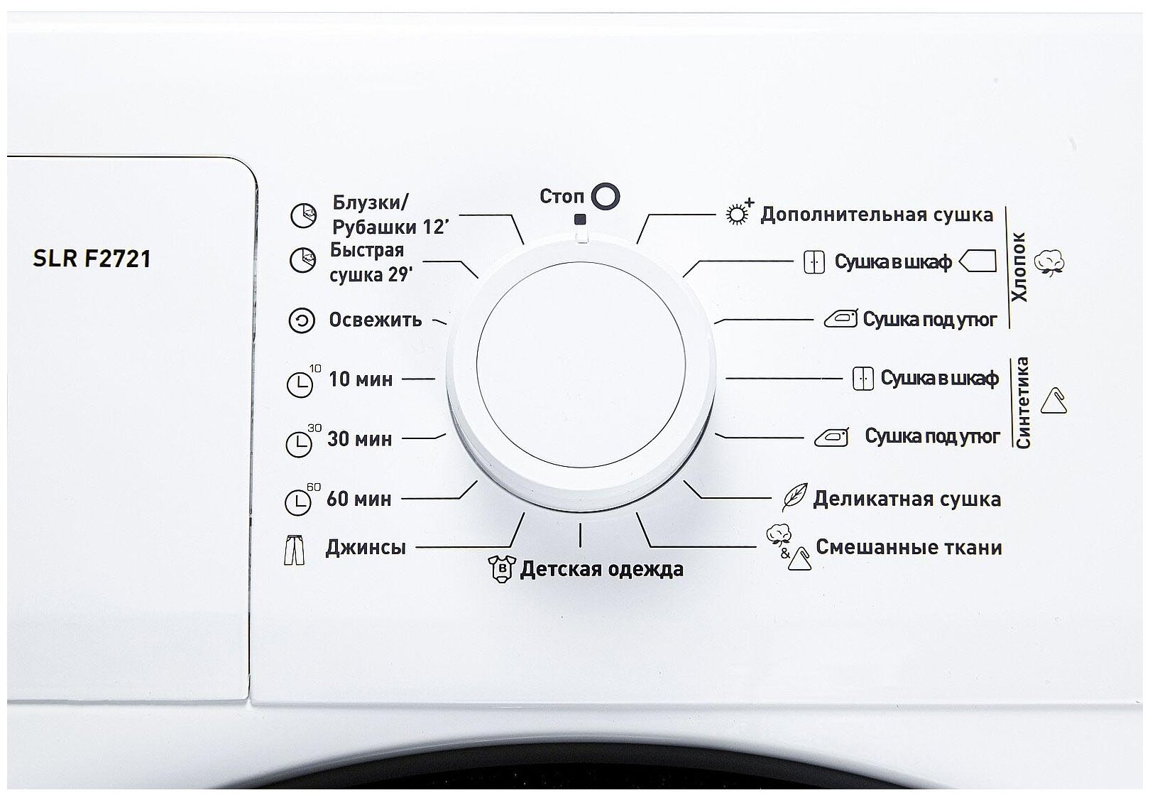 ворсовый фильтр, отложенный старт, предотвращение сминания, реверсивное вращение барабана, сбор конденсата, установка продолжительности программы, Звуковой сигнал, Отключение звукового сигнала, Отсрочка запуска