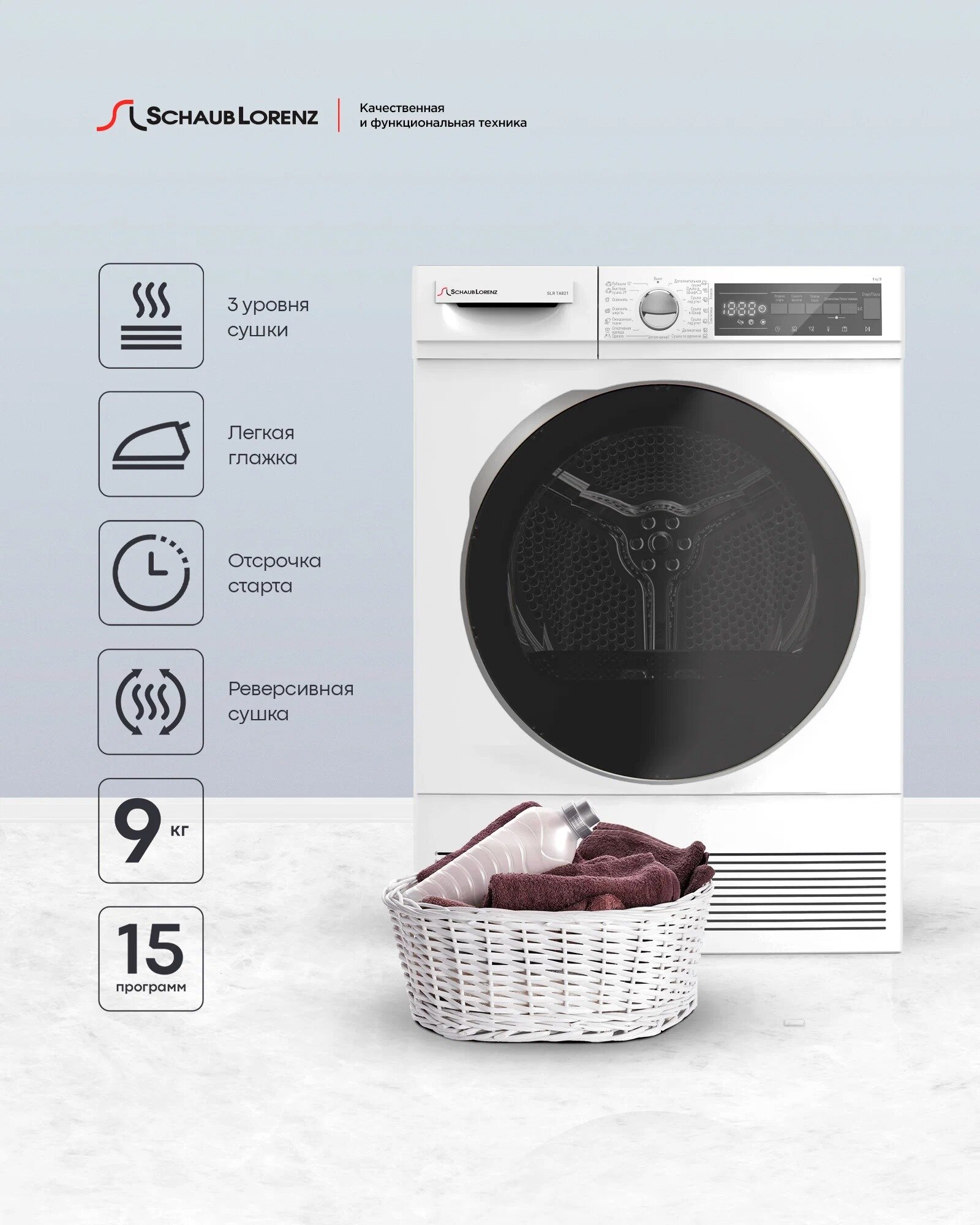 Сушильная машина SCHAUB LORENZ SLR TA821, белая - 1 шт, инструкция - 1 шт