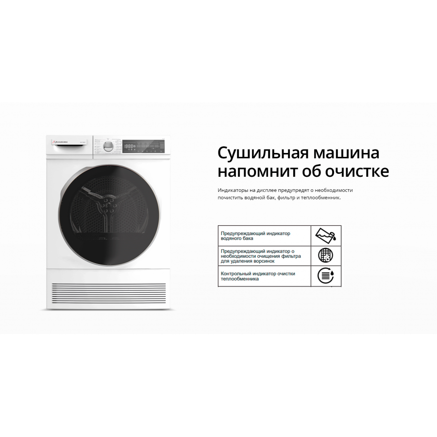 Мне нравится эта сушильная машина, вмещает целых 9 кг белья, достаточно внушительные размеры.