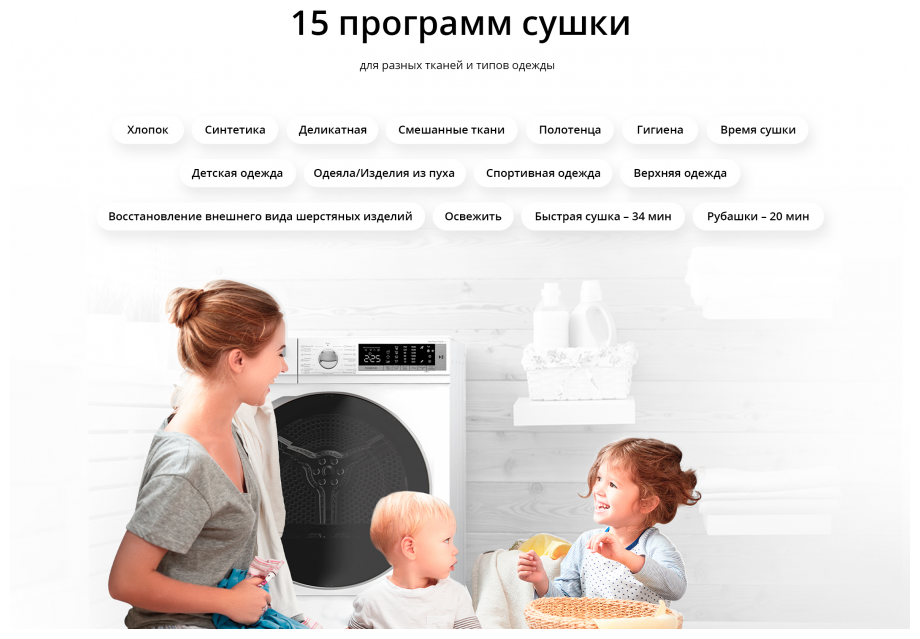 быстрая сушка, верхняя одежда, детская одежда, джинсы, лёгкая глажка, подушки / одеяла, полотенца, пуховые изделия, синтетика, смесовые ткани, сорочки (рубашки), спортивное бельё, хлопок, Звуковой сигнал, Отключение звукового сигнала, Отсрочка запуска, быстрая сушка 34, восстановление внешнего вида шерстяных изделий, гигиена, деликатное, одеяла/ изделия из пуха, освежить, рубашки 20, спортивная одежда