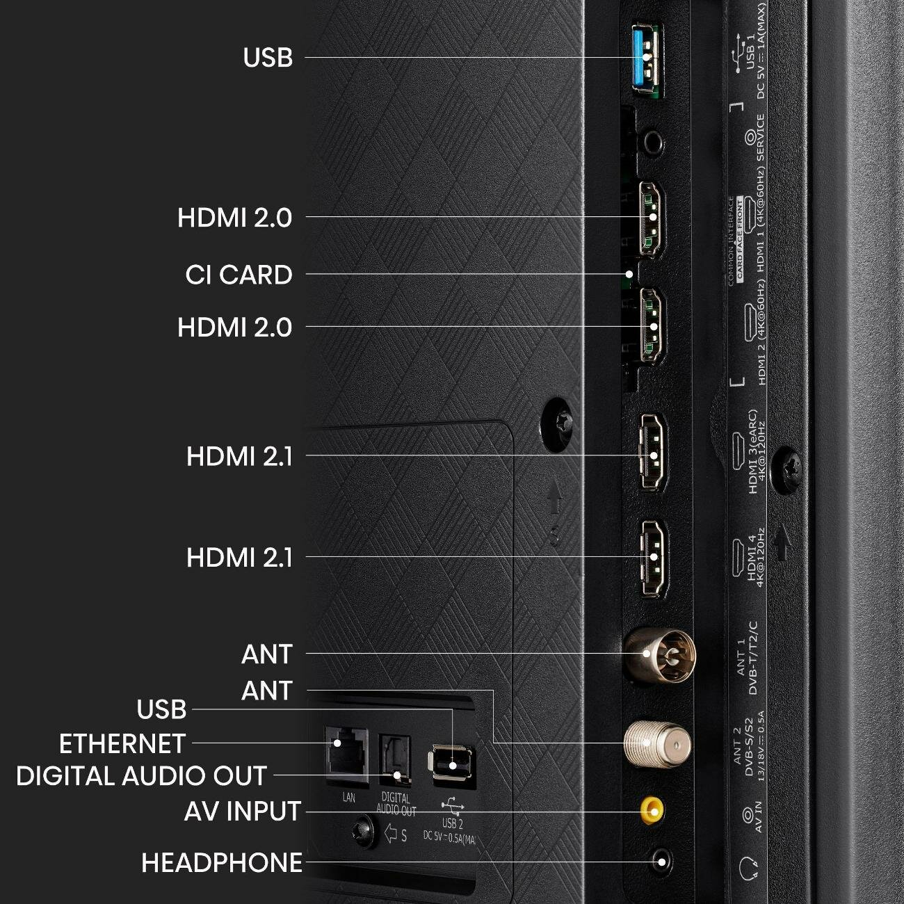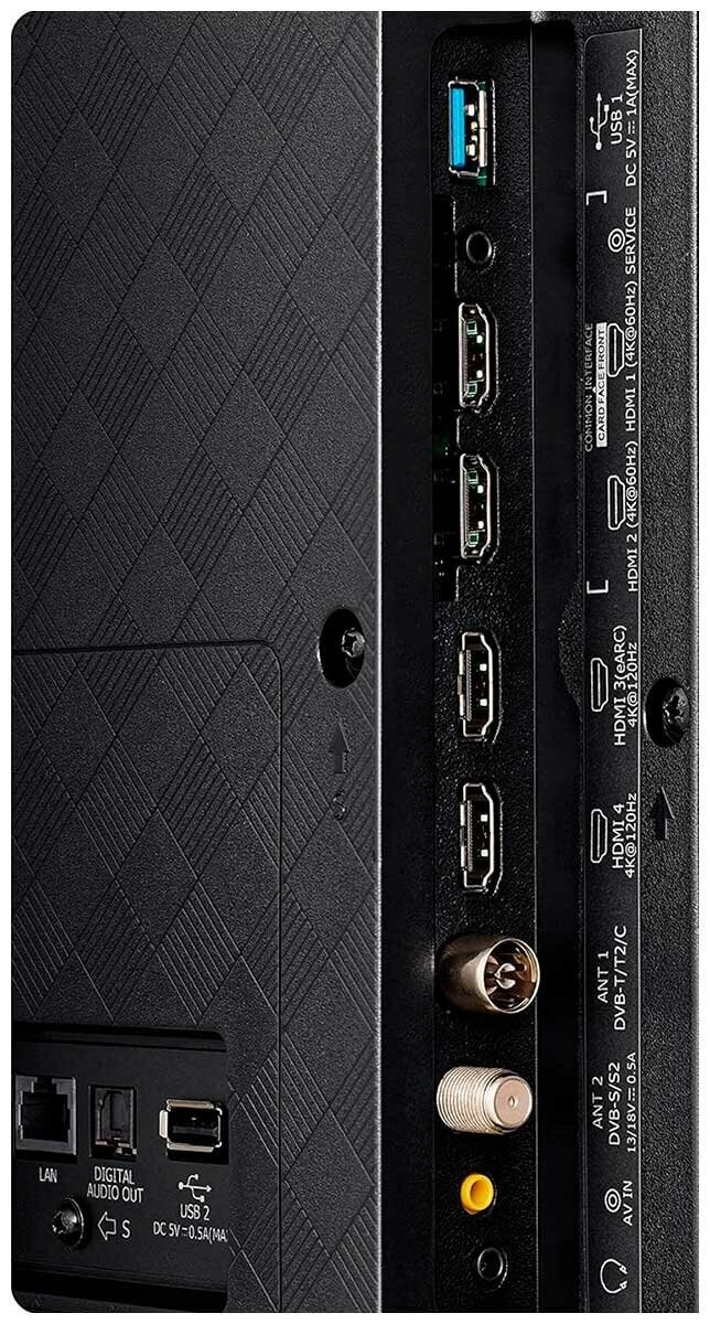 AV-вход, Ethernet - RJ-45, USB Type-A, вход HDMI, вход HDMI x 4, выход на наушники, композитный видеовход, слот CI/CI+, 3.5 мм, RF тюнер*2, RJ45 порт, S/PDIF, USB*2, Антенный вход (RF), Аудио вход (Л/П), Композитный вход, Цифровой аудиовыход