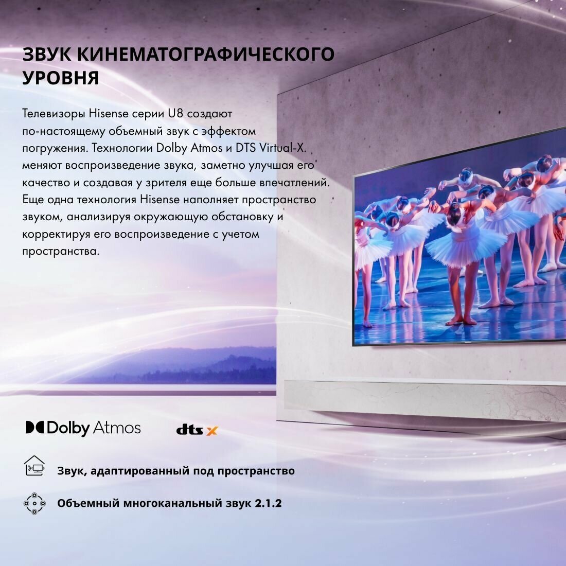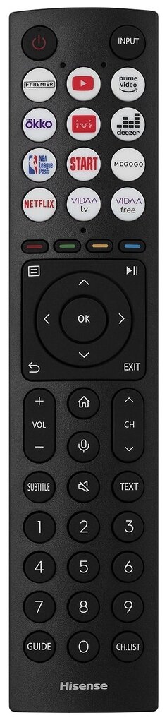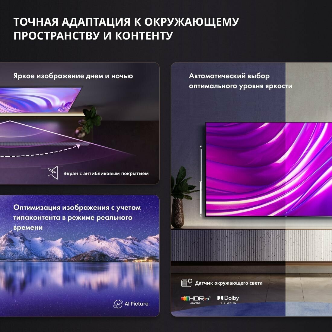 энергопотребление в режиме ожидания: <0.5Вт; процессор - Quad Core/MT9900; операционная система VIDAA U6.0; функция шумоподавления; масштабирование изображения Ultra HD; технология динамической компенсации MEMC; телетекст; интернет браузер Odin; приложение Anyview Cast, приложение Anyview Stream, приложение Smartphone; режим Filmmaker; комплектация: телевизор, руководство по эксплуатации, пульт дистанционного управления; настольная подставка
