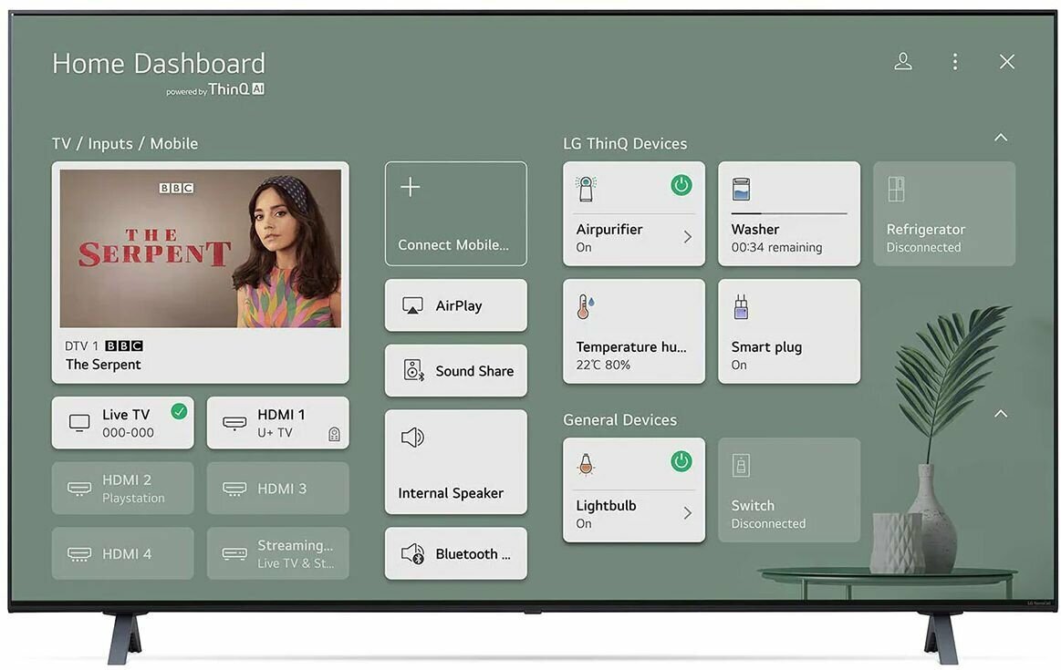 процессор LM21A 4K; ОС webOS 6.0; режим режиссера FilmMaker Mode; игровой режим ALLM; поддержка умных колонок Yandex; пульт Magic Remote в комплекте; функция виртуальной реальности 360 VR; технология Local Contrast