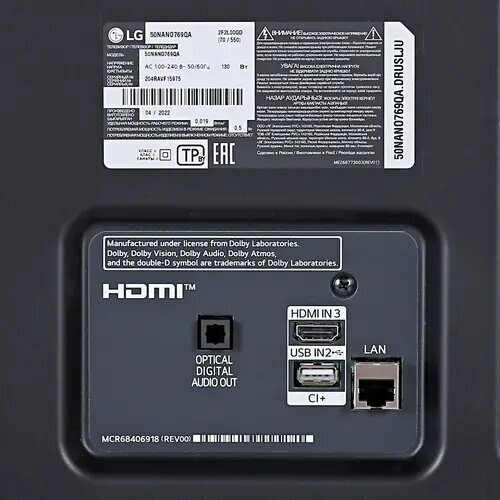 Ethernet - RJ-45, USB Type-A, USB Type-A x 2, вход HDMI, вход HDMI x 3, композитный видеовход, слот CI/CI+, слот CI/CI+ x 2, Антенный вход (RF)