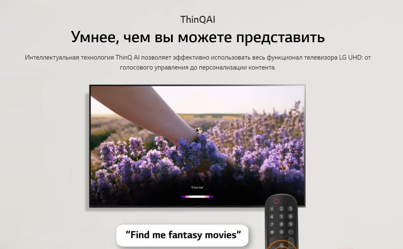 голосовое управление, защита от детей, игровой режим, ., LG Smart ThinQ.Работает в системе quot, Пульт ДУ, Таймер включения/выключения, Управление голосом, Управление со смартфона, голосовое управление.Экосистема Умного дома Apple HomeKit, умный домquot