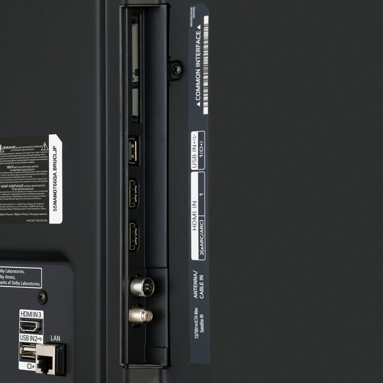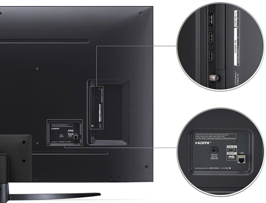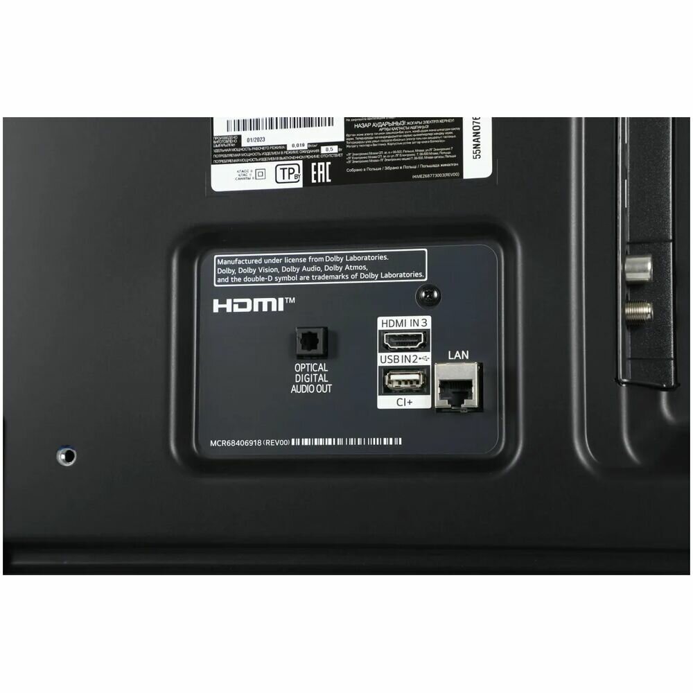 Ethernet - RJ-45, USB Type-A, USB Type-A x 2, вход HDMI, вход HDMI x 3, выход аудио цифровой оптический, композитный видеовход, слот CI/CI+, 3.5 мм, CI слот, S/PDIF, S/PDIF оптический, webOS, Антенный вход (RF), выход аудио оптический