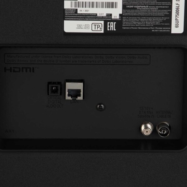 DLNA, голосовое управление, гостиничный ТВ, датчик освещенности, защита от детей, картридер, Local Contrast, Гостиничный режим, Пульт ДУ, Управление голосом, гостиничный ТВ, защита от детей, датчик освещенности, DLNA, игровой режим ALLM, поддержка Умных колонок Yandex, поддержка пульта Magic Remote, процессор LM21A 4K, режиссерский режим FilmMaker Mode, функция виртуальной реальности 360 VR