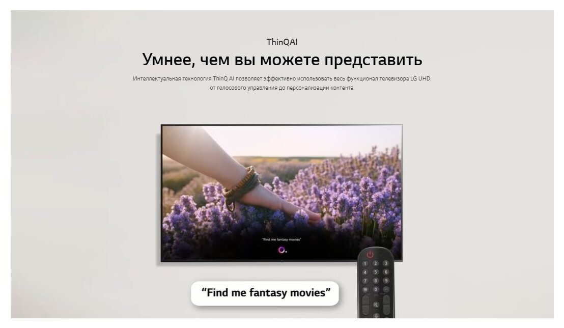 родительский контроль, режим «Отель», 4-х ядерный процессор, магазин приложений LG, технология Screen Share, Clear Voice Pro, технология LG ThinQ, технология речевого ввода текста (Speech to Text), панель управления домом (Home Dashboard), функция «Быстрый доступ», функция «Универсальный Пульт», HGIG режим, функция виртуальная реальность, функция Room to Room Share, функция подключение USB-камеры, процессор α5 Gen5