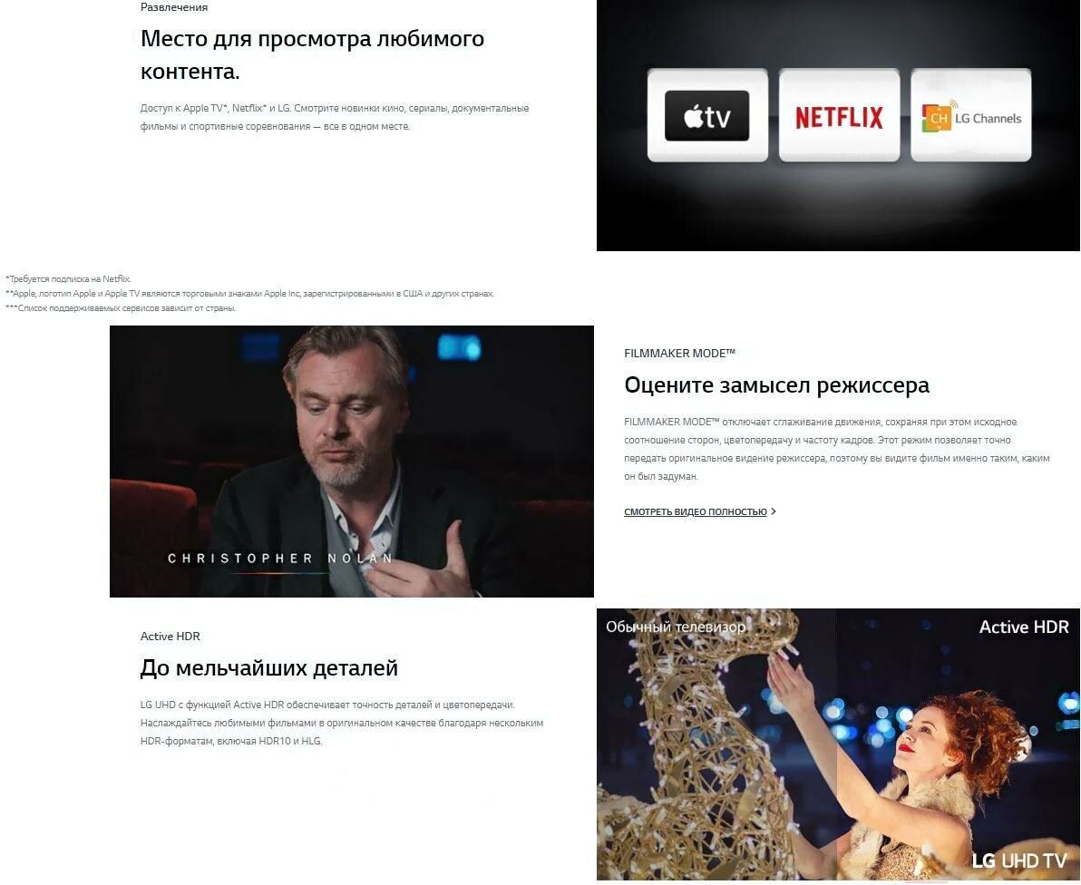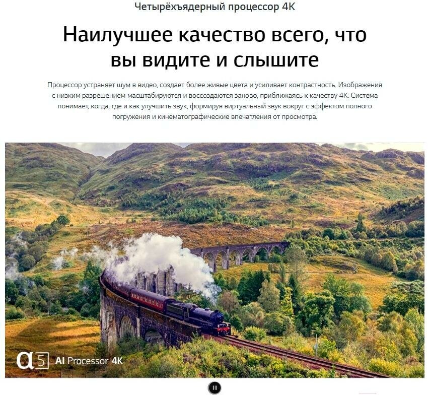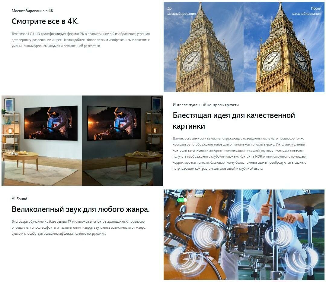 процессор LM21A 4K; режиссерский режим FilmMaker Mode; игровой режим ALLM; функция виртуальной реальности 360 VR; поддержка Умных колонок Yandex; технология Local Contrast