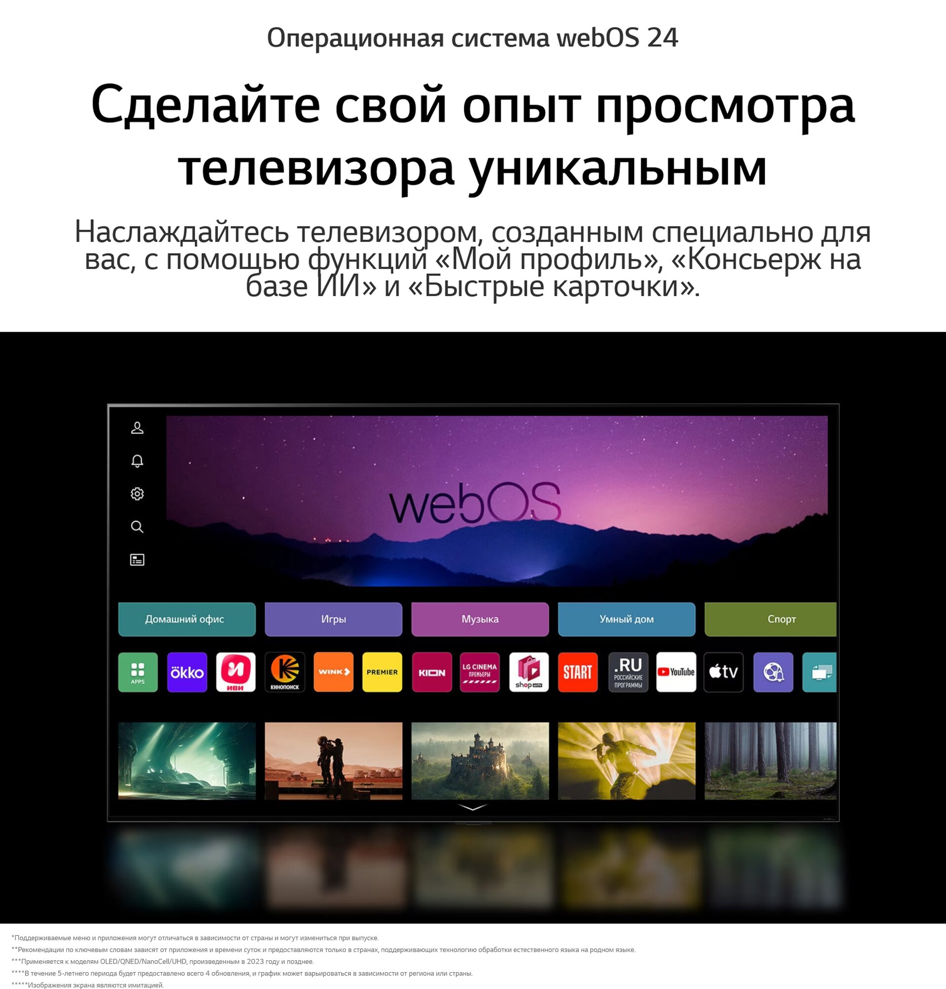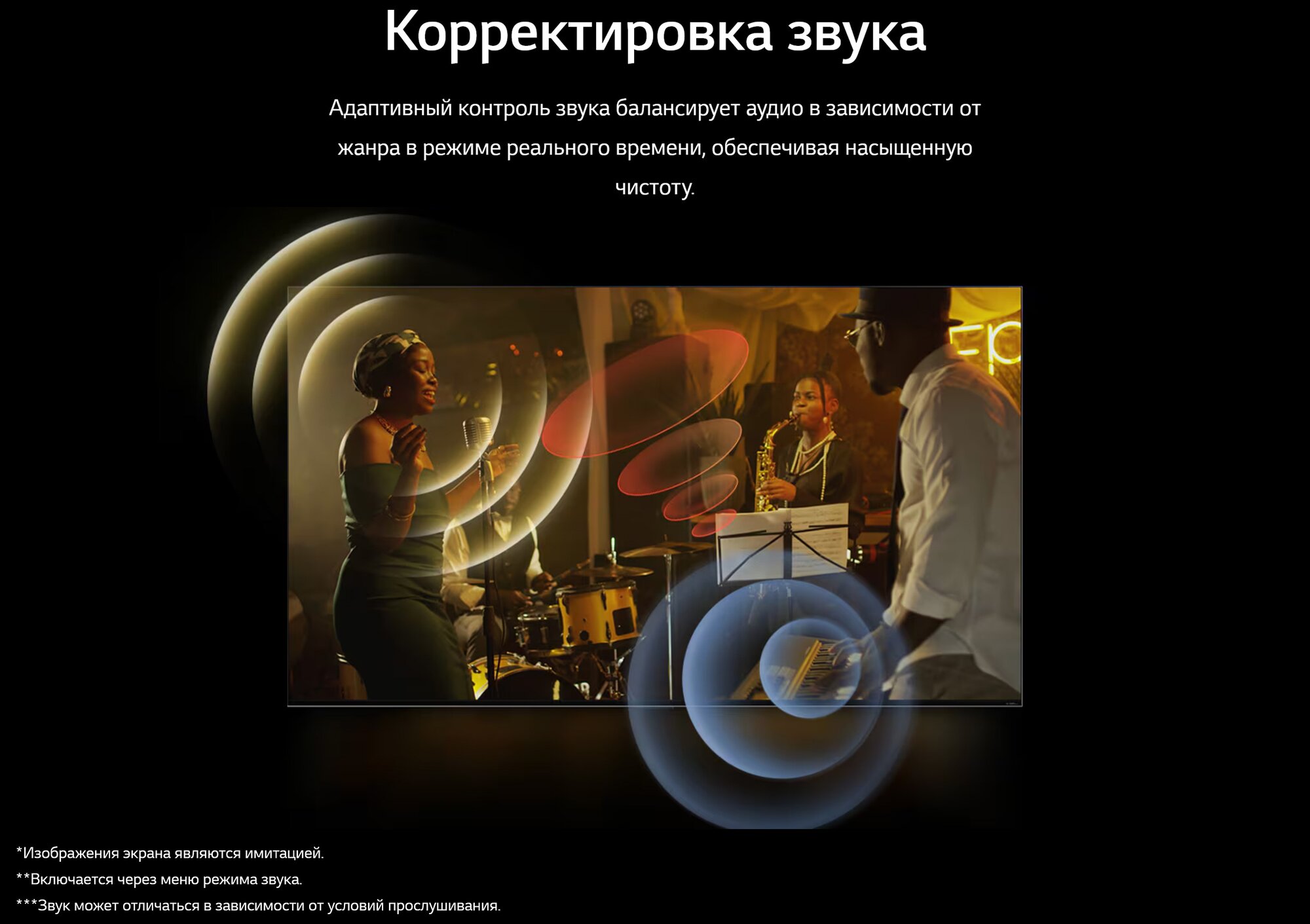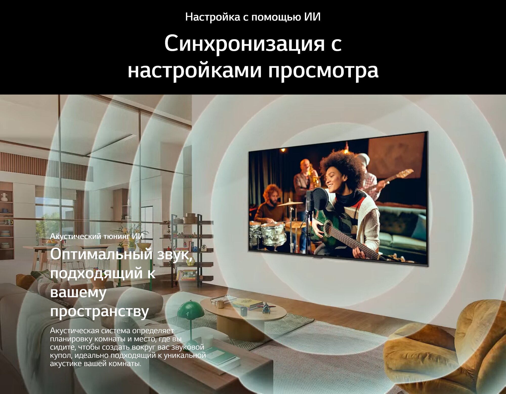 Dolby Digital, автоматическое выравнивание громкости, объемное звучание (Surround), стереозвук, AI Sound Pro, Clear Voice Pro, LG Sound Sync