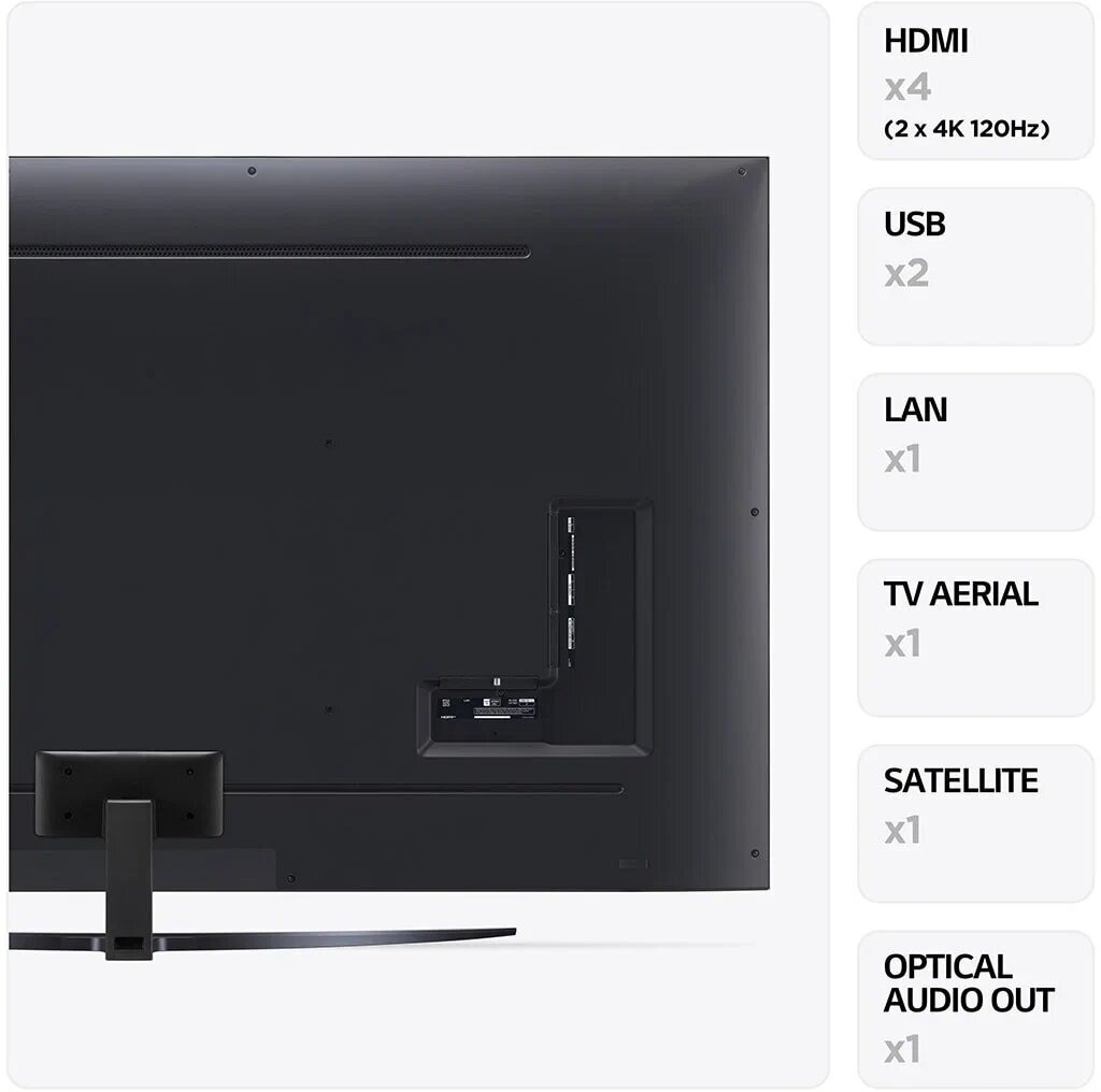 Голосовое управление. Смарт ТВ. Встроенный модуль Bluetooth: Да. Габаритные размеры (В*Ш*Г): 117.8*192.7*42.5 см. Серия: UR8100. Диагональ экрана: 217. Ultra HD: Да. Экран: 86"/3840x2160 Пикс. Частота обновления: 60. Технология HDMI ARC: Да. Цифровое шумоподавление: Да. Операционная система: WebOS. Звук: AI Sound Pro. Смартфон в качестве пульта ДУ: Да. Поддержка Wi-Fi: Да. Поддержка Smart TV: Да. Sleep-таймер: Да. Цифровой тюнер DVB: T/T2/C/S2. LAN разъем (RJ45): 1. Выход оптический (Toslink): 1. Разъем для модуля DVB CAM: 1. Настольная подставка: Да. Вес без подставки: 45.2. Гарантия предоставляется: продавцом. Воспроизведение с USB: Да