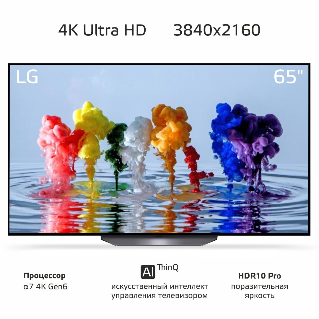 голосовое управление. Смарт ТВ; встроенный модуль Bluetooth: да; серия: B3; диагональ экрана: 164; Ultra HD: да; экран: 65"/3840x2160 Пикс; частота обновления: 120; технология HDMI ARC: да; цифровое шумоподавление: да; операционная система: WebOS. Звук: AI Sound Pro; смартфон в качестве пульта ДУ: да; поддержка Wi-Fi: да; поддержка Smart TV: да; Sleep-таймер: да; цифровой тюнер DVB: T/T2/C/S2. LAN разъем (RJ45): 1. выход оптический (Toslink): 1. разъем для модуля DVB CAM: 1. настольная подставка: да; вес без подставки: 24. гарантия предоставляется: продавцом; воспроизведение с USB: да