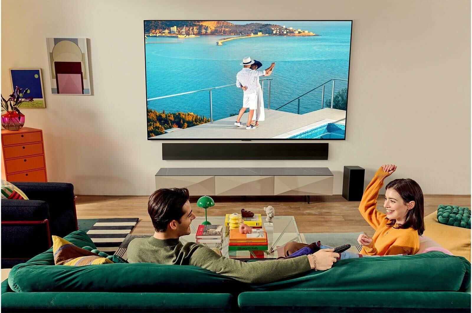 DTS, Dolby Atmos, Dolby Audio, Dolby Digital, Dolby Digital Plus, Dolby MS12, автоматическое выравнивание громкости, без акустической системы, объемное звучание (Surround), сабвуфер, стереозвук, AI Acoustic Tuning, AI Sound Pro, Bluetooth Surround Ready, Clear Voice Pro, LG Sound Sync, Sound Mode Share, WiSA Ready