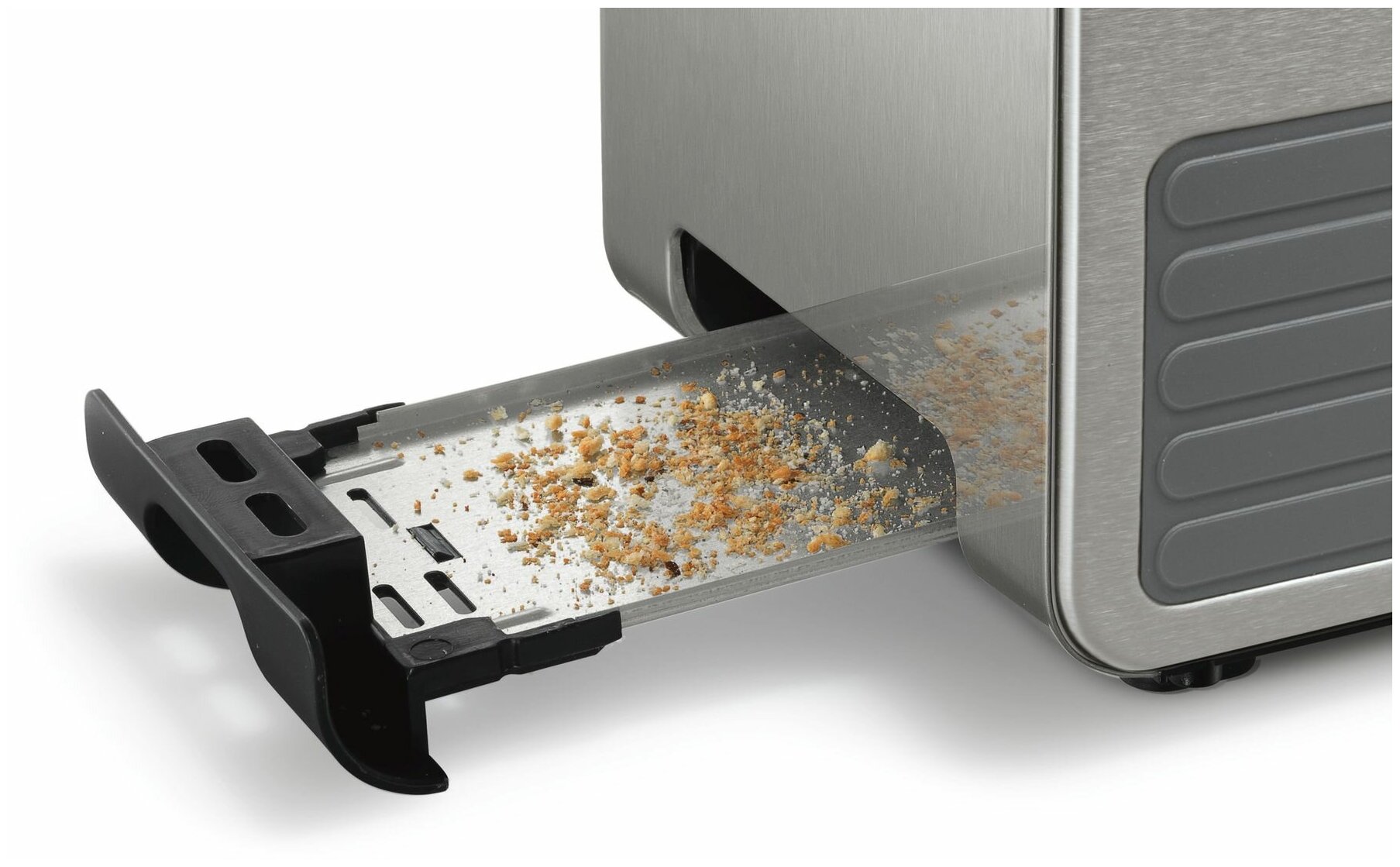 отсек для шнура, термоизолированный корпус, Автозагрузка тостов, Автоматическое поднятие, Автоматическое центрирование тостов, Кнопка отмены, Поддон для крошек, Подсветка кнопок, Прорезиненные ножки, Регулировка степени обжаривания, Решетка для подогрева, Экстра-подъем тостов, лоток для крошек, отсек для сетевого шнура, поддон для крошек, разморозка, решетка для подогрева, решетка для подогрева булочек, функция подогрева