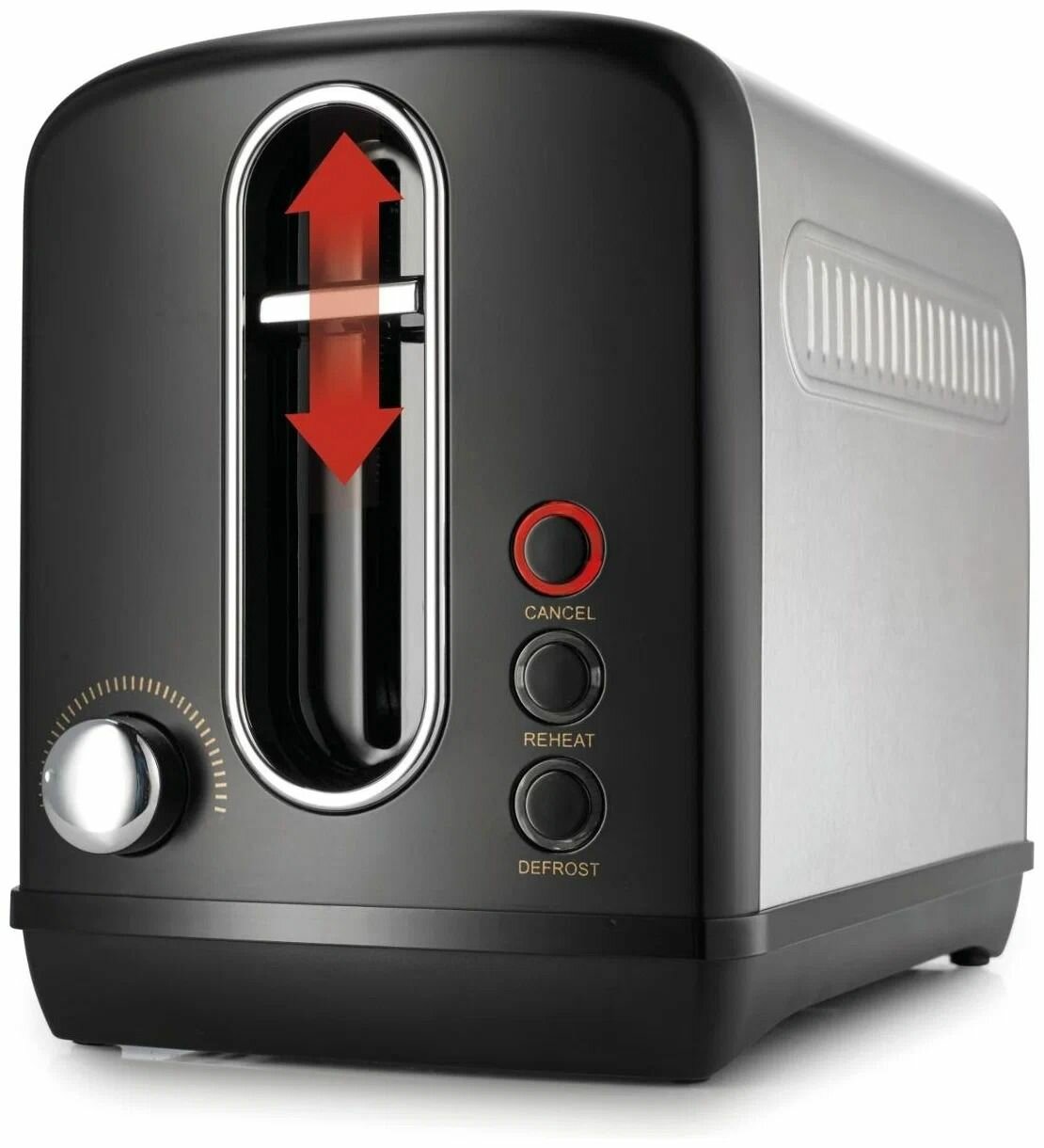 отсек для шнура, термоизолированный корпус, Автоматическое центрирование тостов, Поддон для крошек, Подсветка кнопок, Прорезиненные ножки, Регулировка степени обжаривания, Экстра-подъем тостов