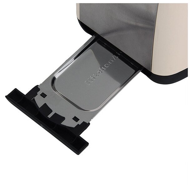 Подсветка кнопок; Прорезиненные ножки; Встроенная подставка для булочек; Выдвижной (съемный) лоток для крошек; Автозагрузка тостов; Кнопка СТОП; Цвет подсветки кнопок - голубой; Электрическое управление; Степеней обжаривания - 7 шт.; Звуковой сигнал; Индикация степени поджаривания; Индикация мощности