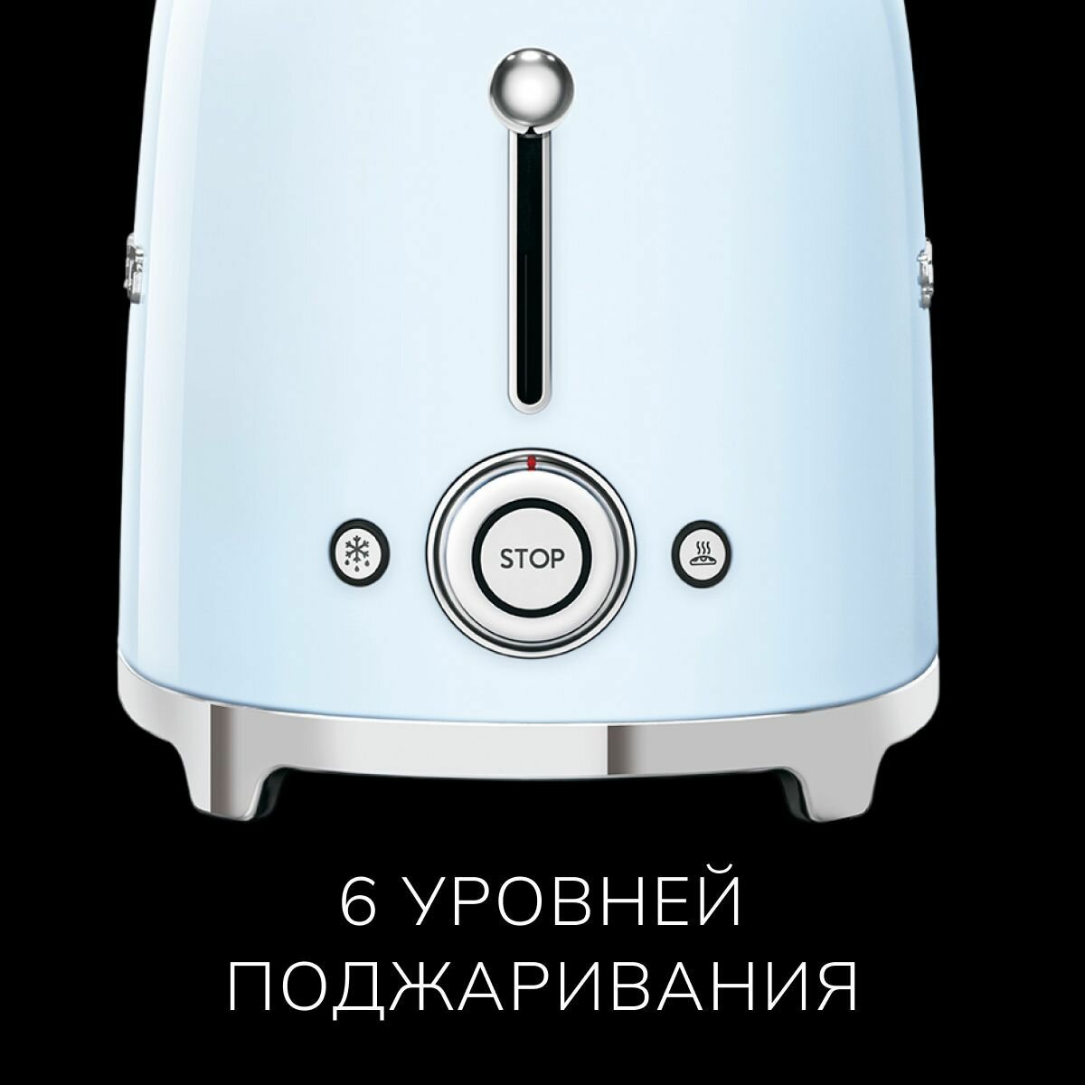Кнопки с подсветкой; подсветка поворотного переключателя; 6 уровней поджаривания; экстра-подъем тостов