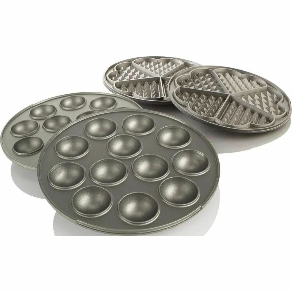 антипригарное покрытие, возможность смены панелей, защита от перегрева, индикатор работы, отсек для хранения шнура, Автовыключение, Вертикальное хранение, Защита от неправильной сборки, Индикация включения, Индикация нагрева, Ручки с защитой от жара, Сменные панели для приготовления, Термоизолированный корпус, индикатор нагрева, регулируемый термостат, съемные формы
