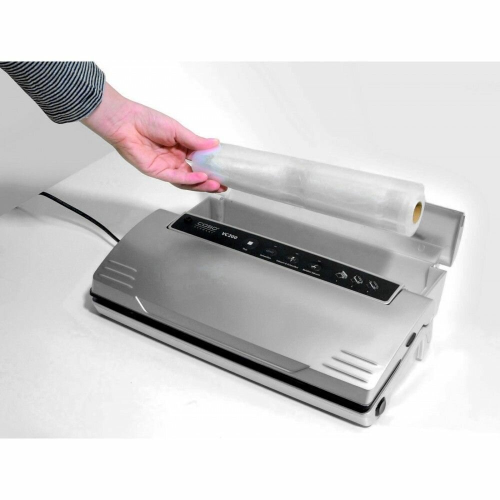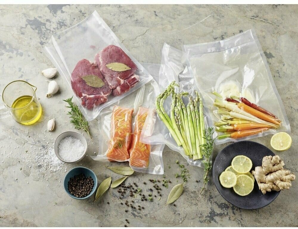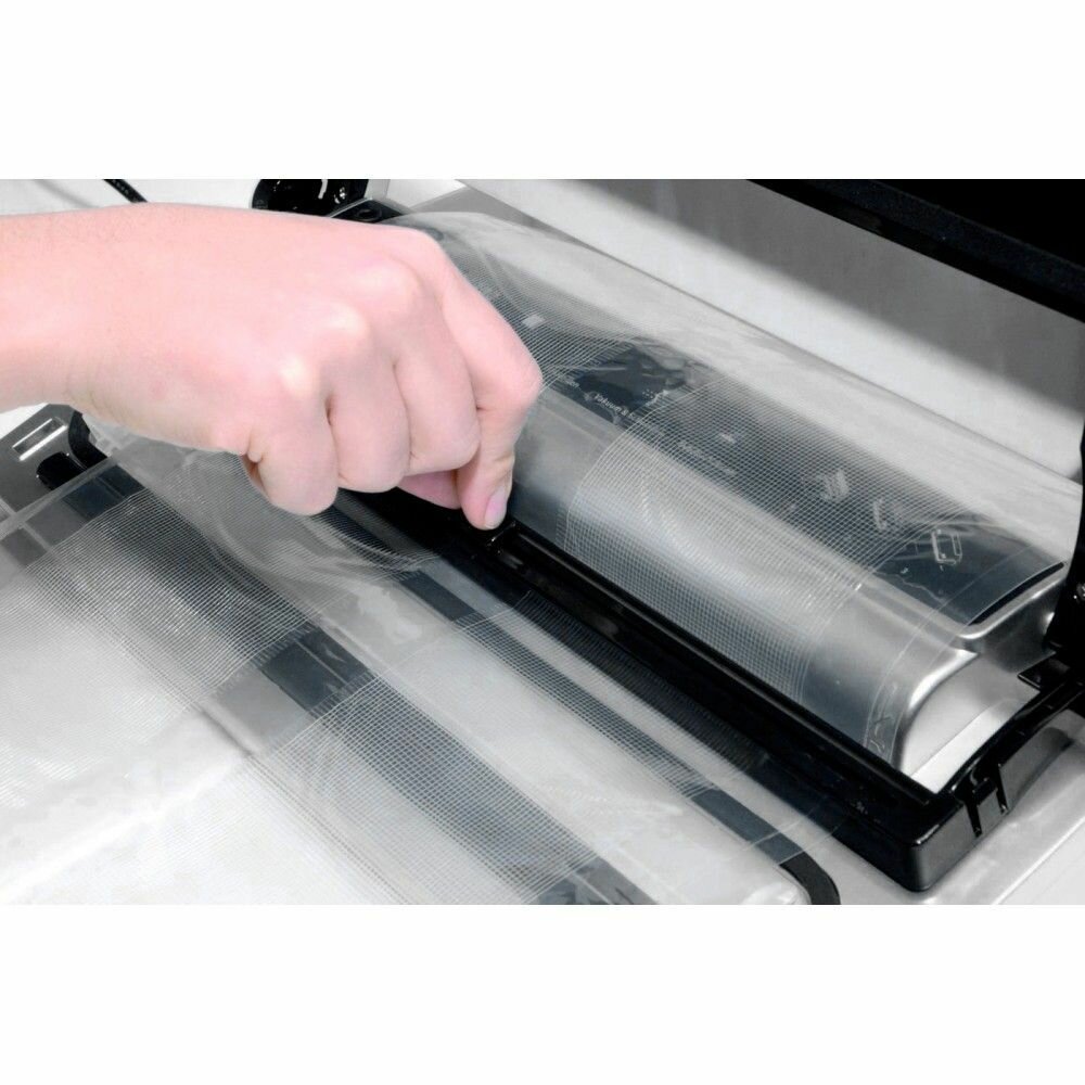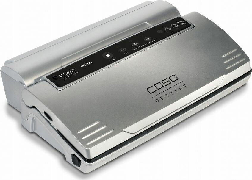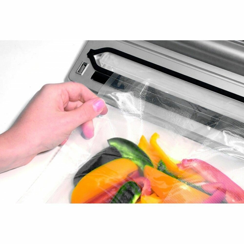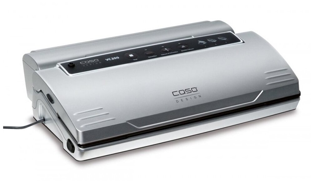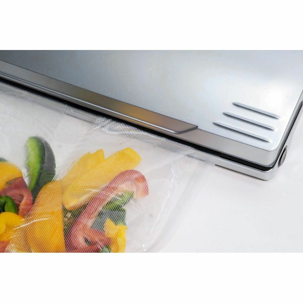 Электронный контроль температуры сварного шва Кнопка остановки насоса для упаковки нежных продуктов Двойной шов Съемная вакуумная камера для сбора жидкости Съемный контейнер для рулона Производительность насоса: 12 л/мин.