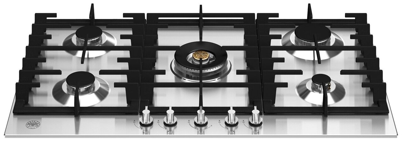 Газовая варочная панель Bertazzoni P905CMODX Modern шириной 90 см оснащена пятью алюминиевыми конфорками и эргономичными металлическими ручками, которые делают приготовление пищи простым и точным. Трехрядная центральная конфорка с двойным воком мощностью 5 кВт обеспечивает дополнительную универсальность. Чугунная решетка прочна и безопасна.