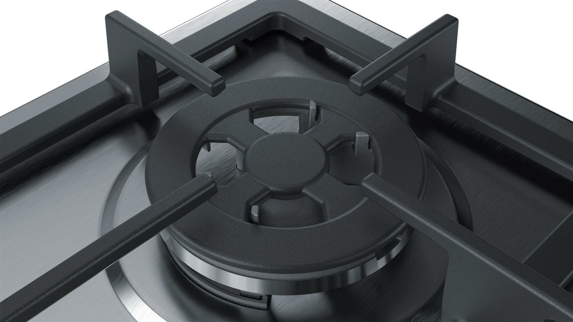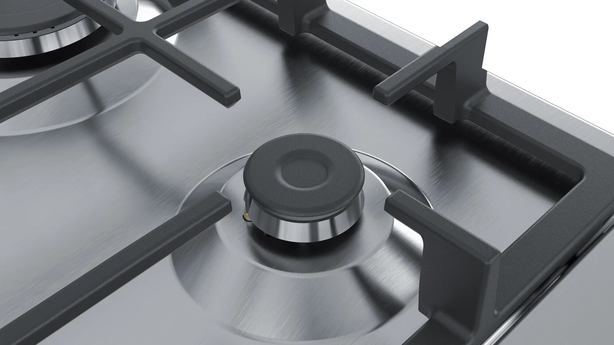 Газовая варочная панель Bosch PGH6B5B90R представлена в цвете нержавеющая сталь.Полированная сталь легка в уходе.