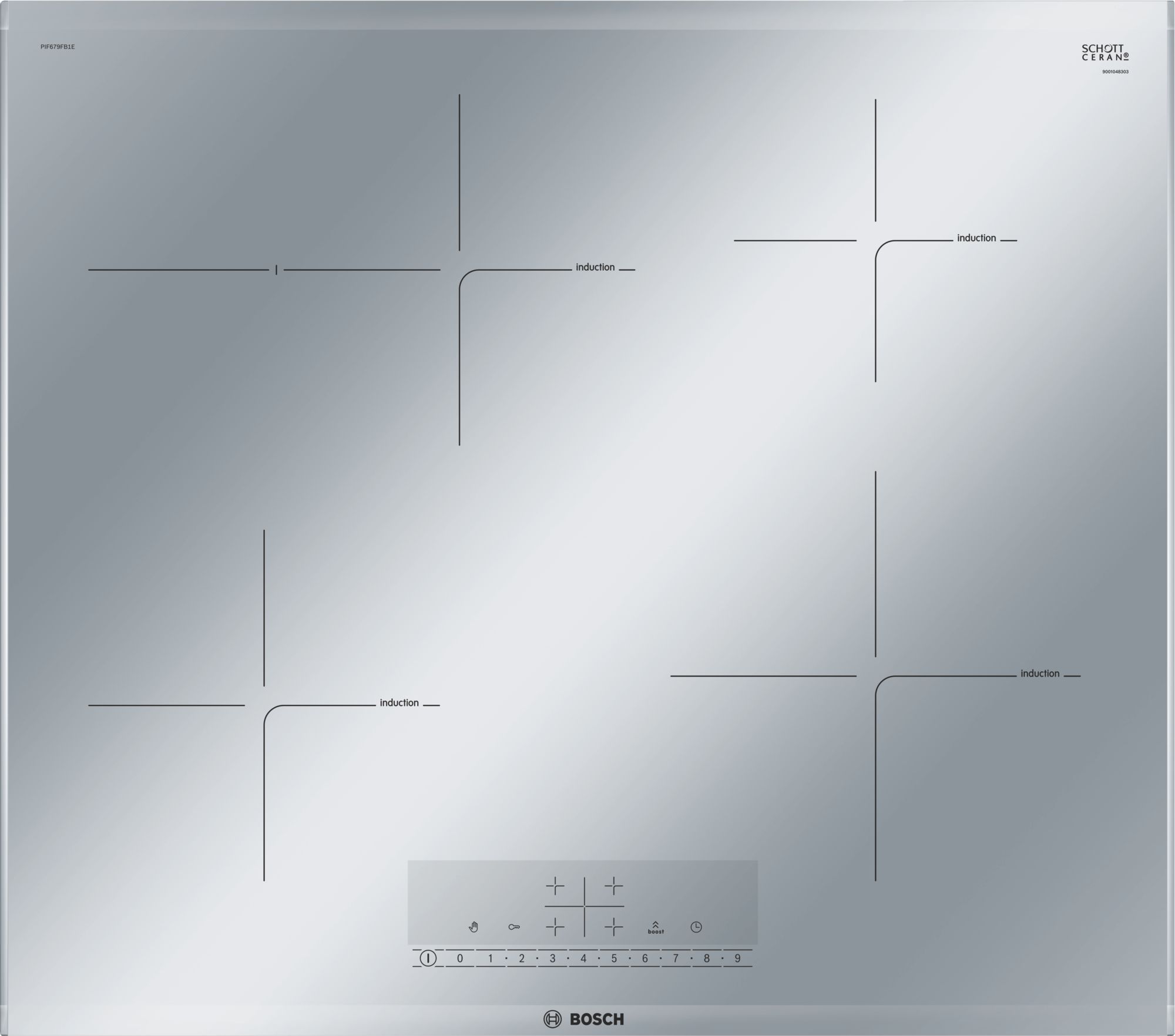 Индукционная варочная поверхность Bosch PIF679FB1E оснащена 4 конфорками.