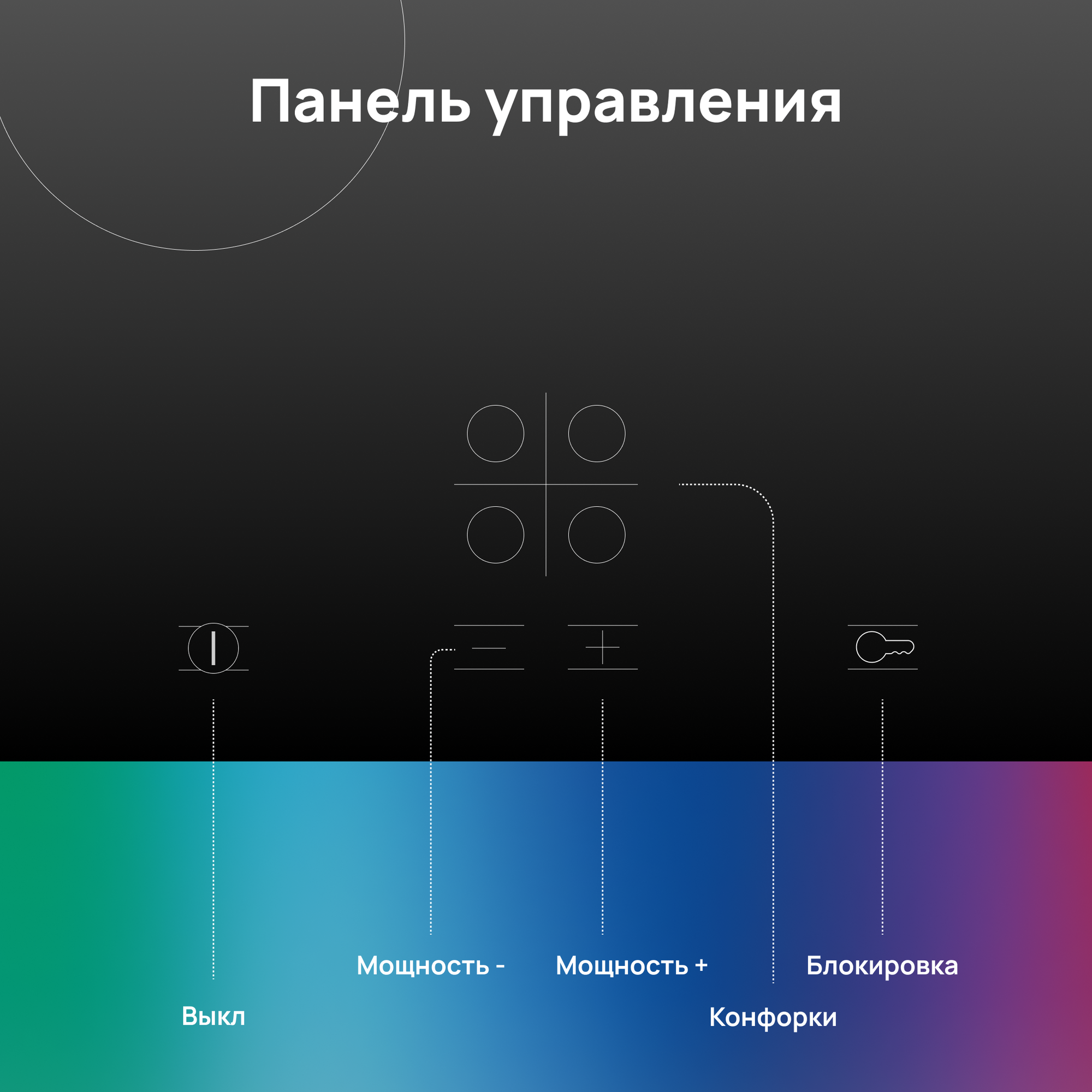блокировка от детей, индикаторы остаточного тепла, функция блокировки