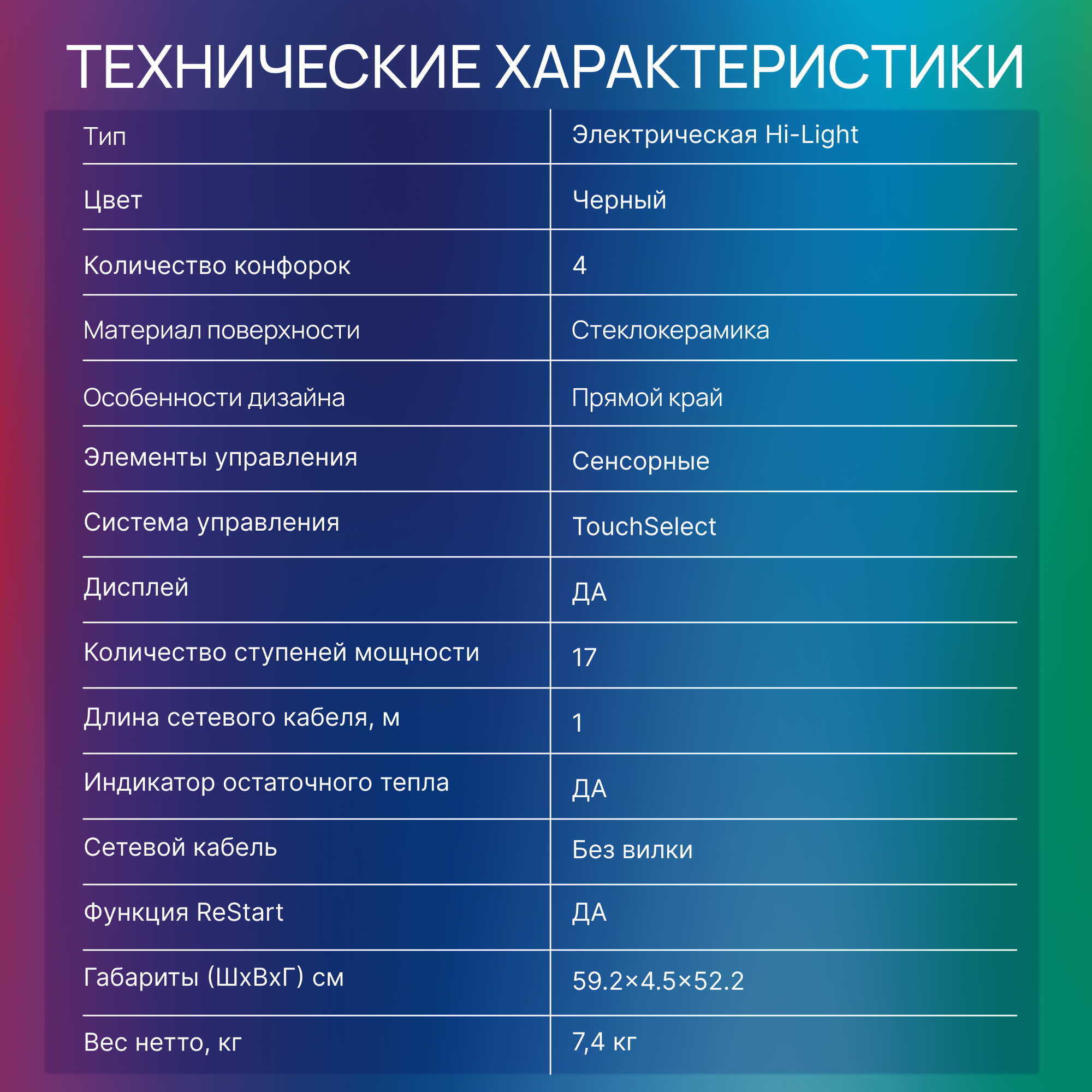Hi Light, двухконтурная, керамическая, с овальной зоной нагрева, экспресс-конфорка, HiLight, Экспресс, нет