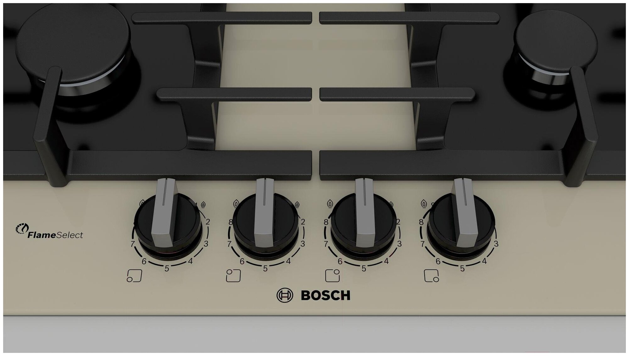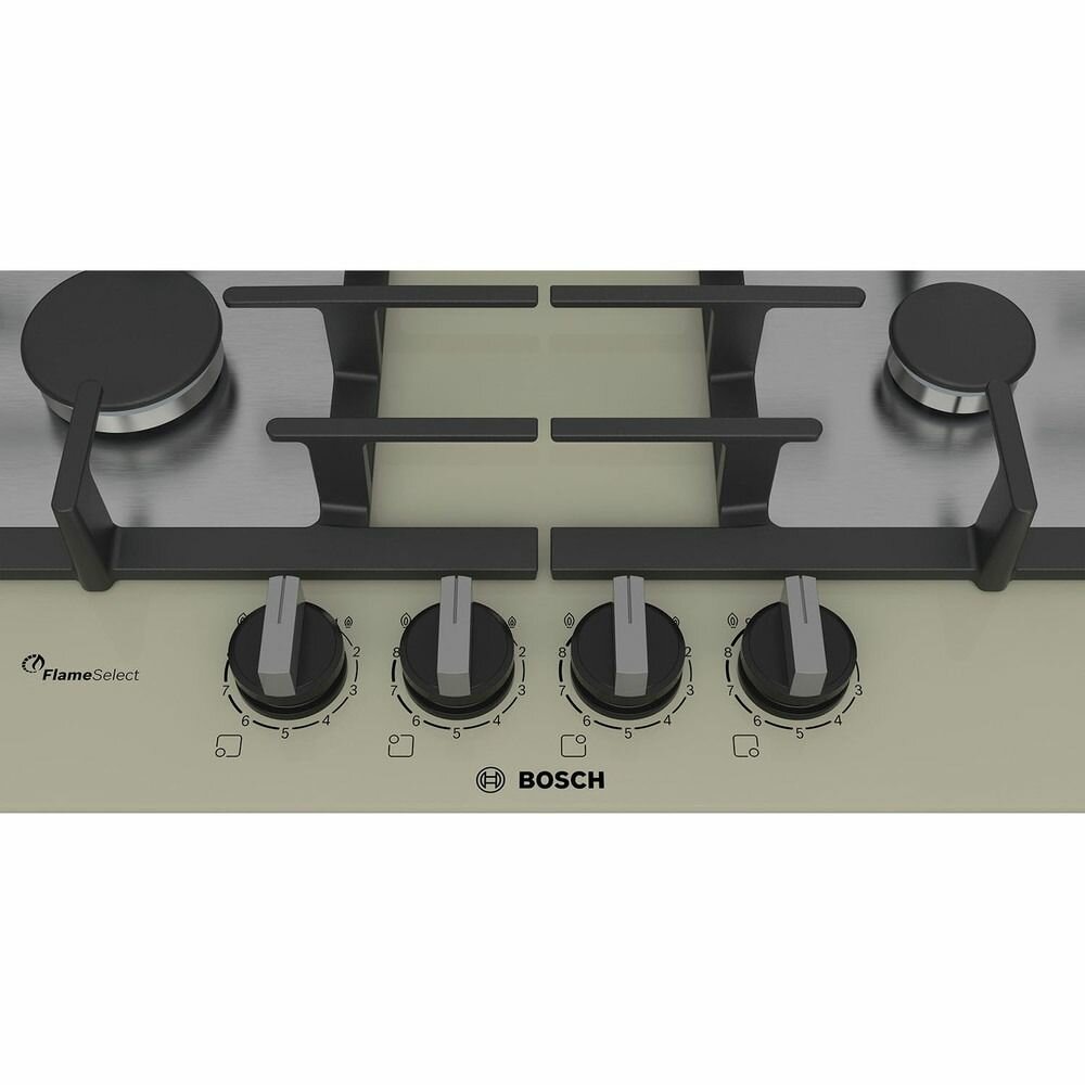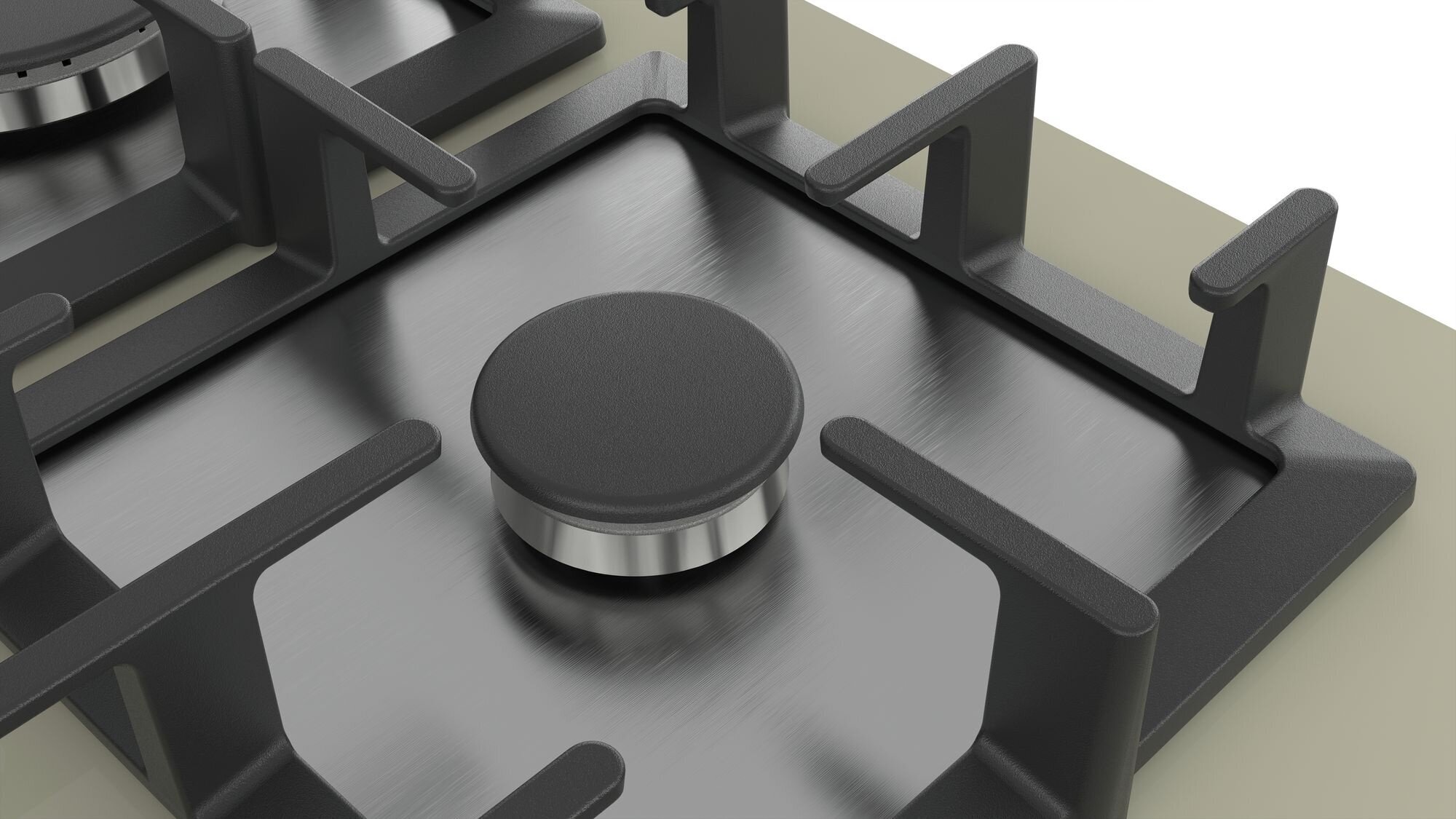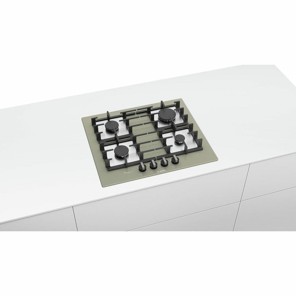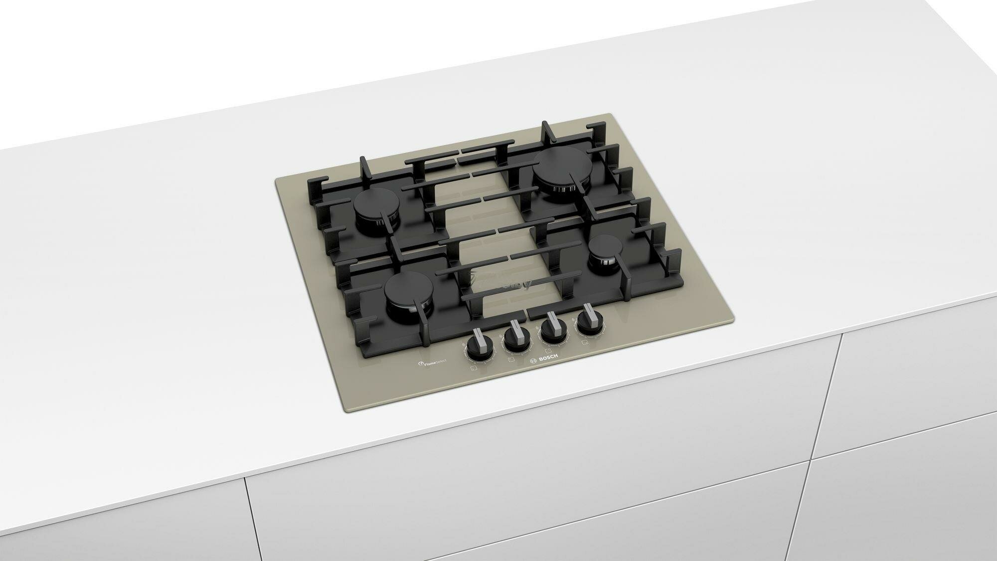 Газовая варочная панель Bosch PPP6A8B91R доступна в кварцевом цвете. Устройство можно установить заподлицо со столешницей.