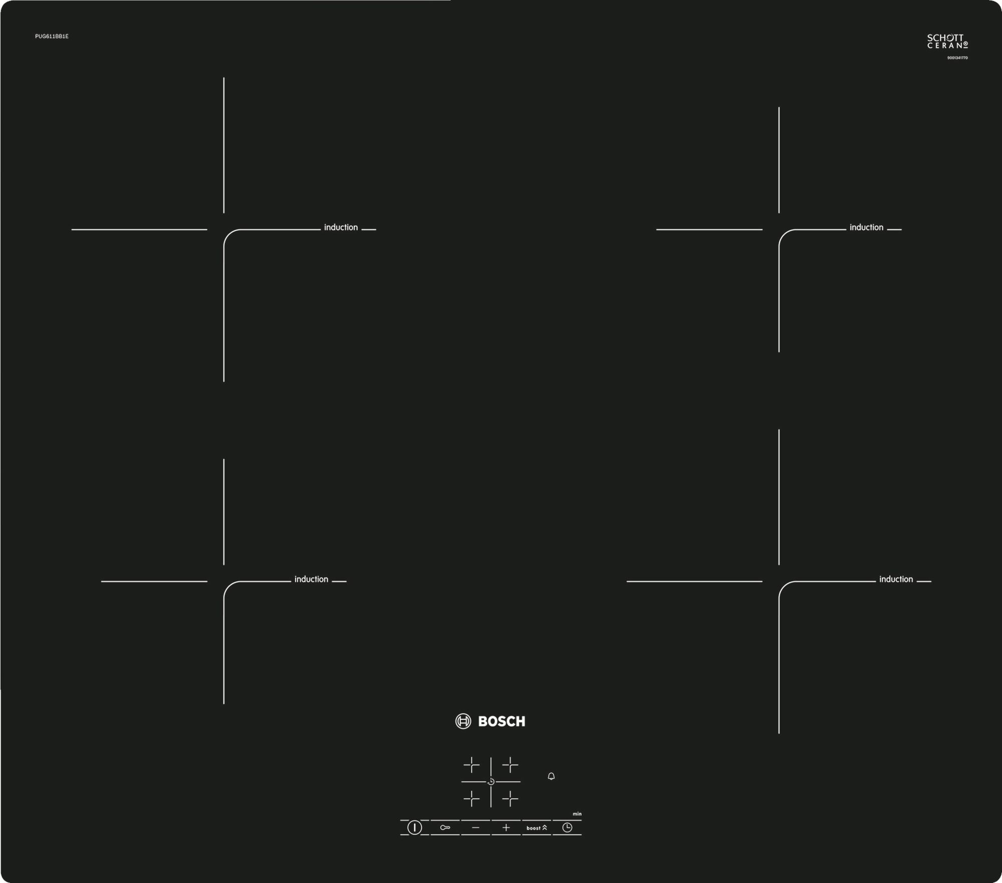 Автоматическое определение наличия и диаметра посуды, Блокировка управления от детей, Централизованное отключение, Индикатор остаточного тепла, Управление Touch Control, Режим Power, Таймер конфорок с отключением, Функция quickStart, Функция re-Start